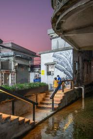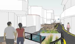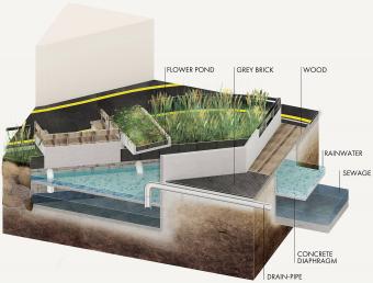 Longjin River was once essential for trade and transportation. Later on, due to the decline of Shajing, the river channel was gradually filled in, narrowed and polluted , turning into a 2-meter wide odorous gutter. Architects adopt a low-cost rain and sewage diversion strategy to divide the channel into two layers. The lower layer is sewage, and the upper is rainwater. Thus, when there is no rainwater, the upper one can be filled by reclaiming filtered water from nearby sewage plant.