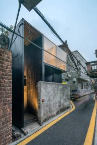 將“抽象網(wǎng)格空間”和“立方像素空間”同當(dāng)代以及歷史空間進(jìn)行融合,是趣城工作室(ARCity Office)經(jīng)常采用的設(shè)計理念和方法。本項目選擇一棟空置老屋進(jìn)行了實驗,在老屋入口處增加了立方像素系統(tǒng)(黑色花紋鋼板+透明白色亞克力),并且延伸進(jìn)建筑內(nèi)部。由于這個系統(tǒng)是具有可變性和容載性的,類似于一種“建筑基礎(chǔ)設(shè)施”,因此可以將屏幕、投影、燈光等設(shè)備自由安裝其中,從而實現(xiàn)在幾乎完全不改變建筑原有狀態(tài)的情況下,包容高密度的媒體信息功能。