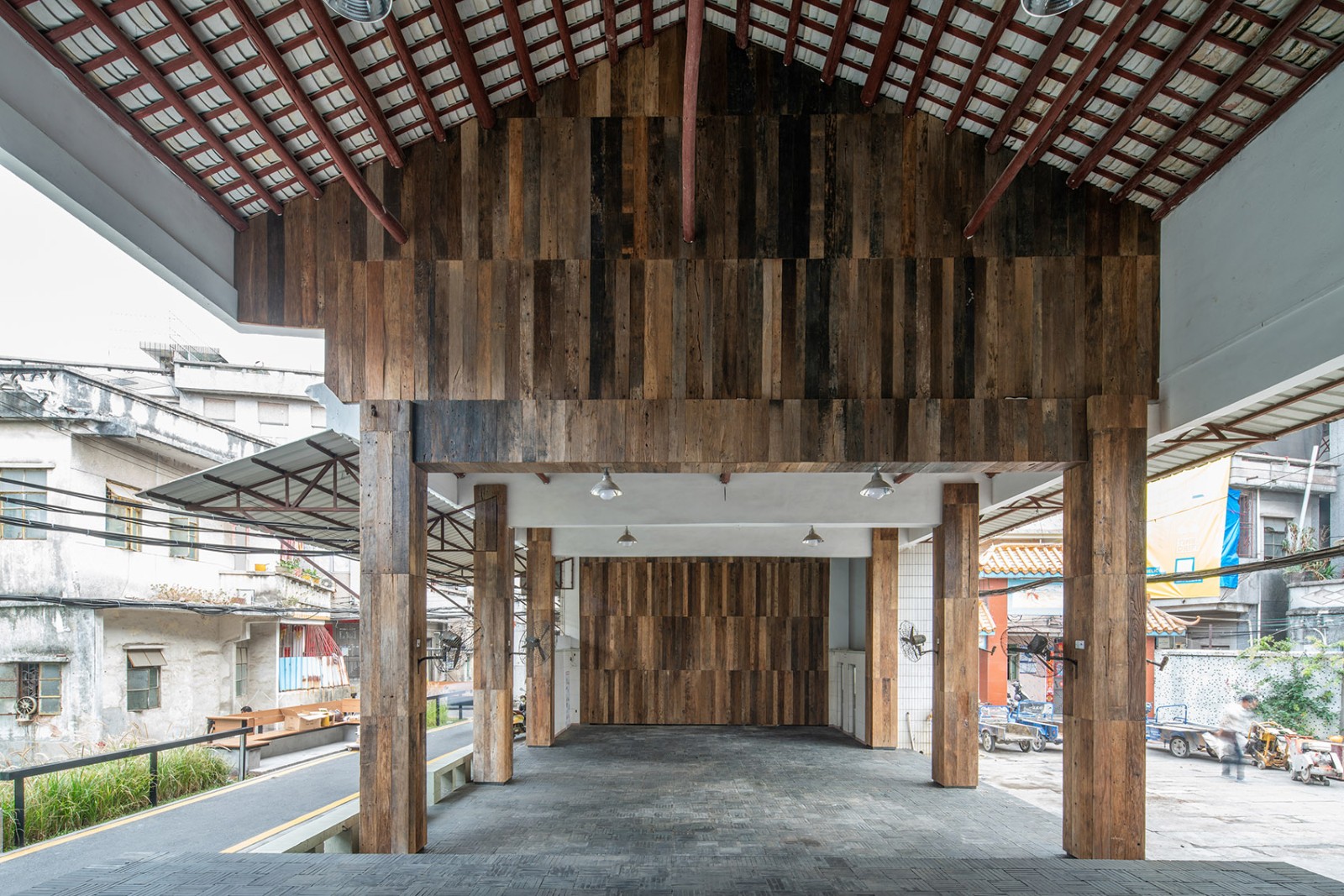 Shajing Ancient Fair has rich historical and cultural heritage. Shajing was one of the four major bazaars in Shenzhen 200 years ago, the Oyster Town of the Pearl River Delta, and the original place of Cantonese opera and mantis fist martial arts. But due to the decline of the entire region, these traditional cultures have also declined. The architects hope to revive the local cultural heritage through the restoration, transformation and creation of a series of public spaces. One of the important places is the public stage. Built in the 1980s, this building has gradually become a useless fire station. Architects redesigned this building by collecting some old wood and bricks from the local area for interior decoration and flooring.Thus, a complex sense of history has been created and villagers can organize activities here.