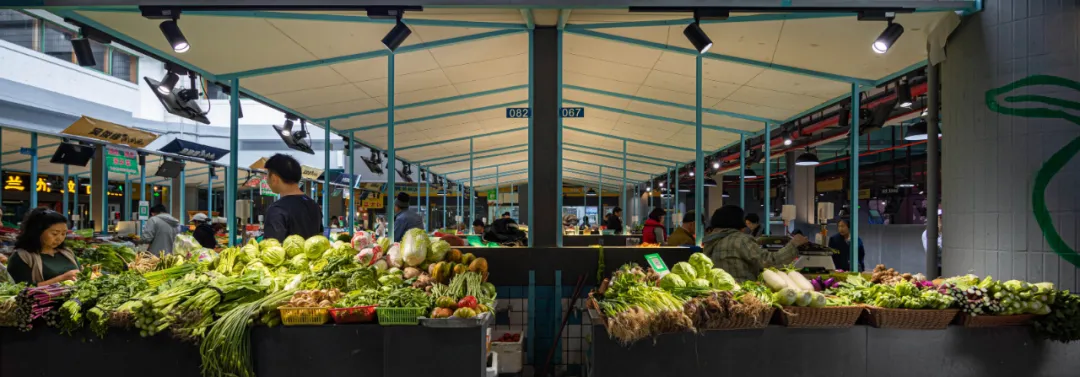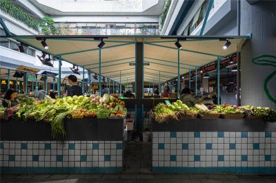 如今,這個老市場充滿了新的活力:瓜果蔬菜碼得整整齊齊,沾著露水和泥巴,就像初夏的早晨新鮮又舒服。美好現(xiàn)實的背后,是業(yè)主單位和設(shè)計師的共同努力。
