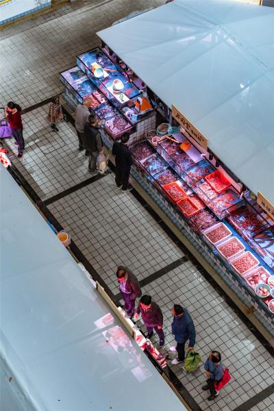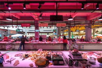 菜市場是一座城市跳動的脈搏。正如汪曾祺先生所說:“看看生雞活鴨,新鮮水靈的瓜菜、彤紅的辣椒,熱熱鬧鬧,挨挨擠擠,讓人感到一種生之樂趣?!辈藞觯褪巧顖?。