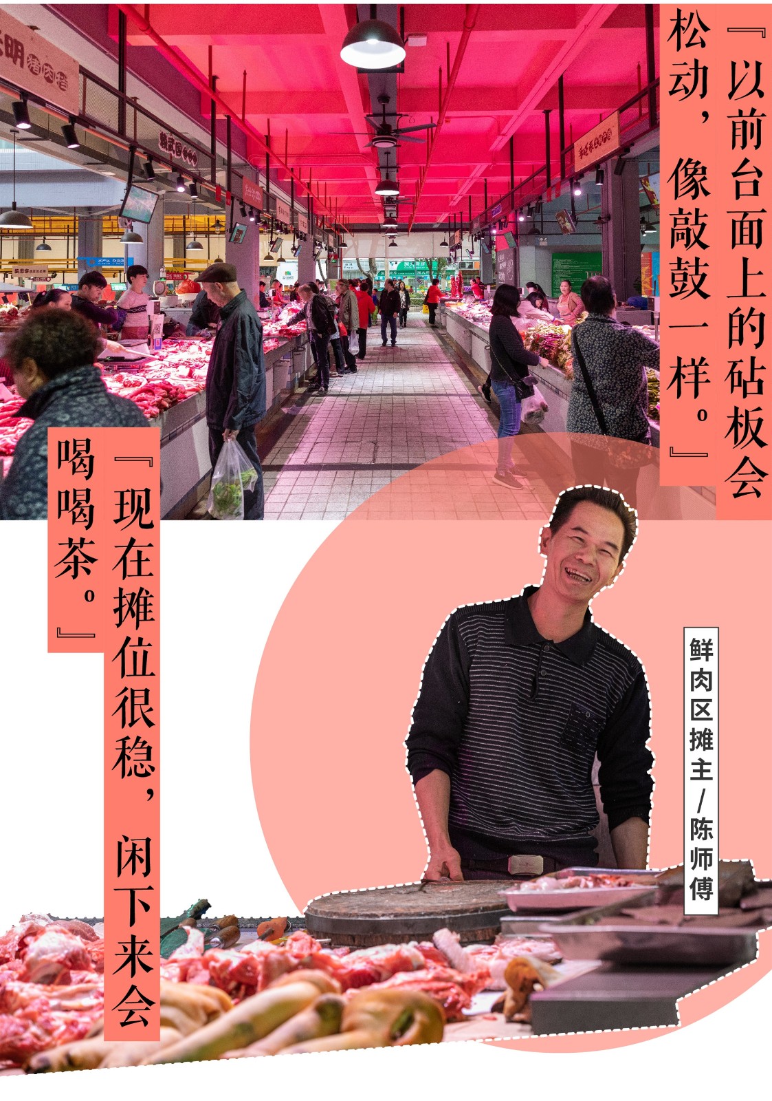 漫步在華僑城綜合市場內(nèi),攤主與顧客之間的招呼聲、活蹦亂跳的魚蝦濺起的水花,這些場景“有聲有色”,更多的年輕人體會到升騰的生活氣息。看到這樣的場景,各位攤主也有一分感慨:這并不是華僑城綜合市場進行的第一次改造,卻是最接地氣的一次轉(zhuǎn)變。