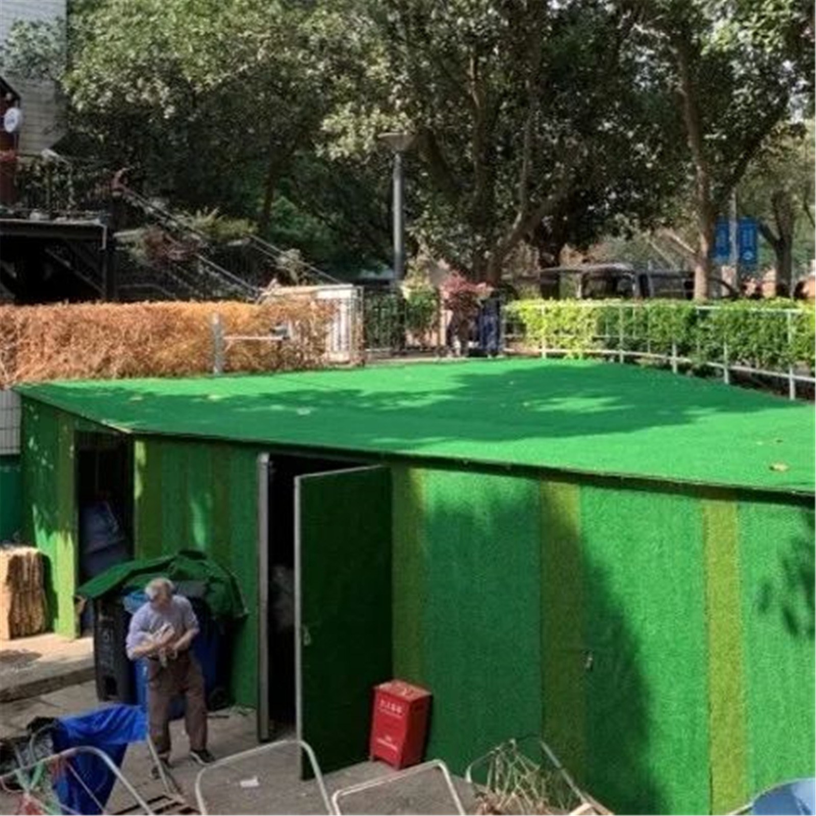 改造策略:垃圾房使用春草和秋草兩色草皮進行外部整改