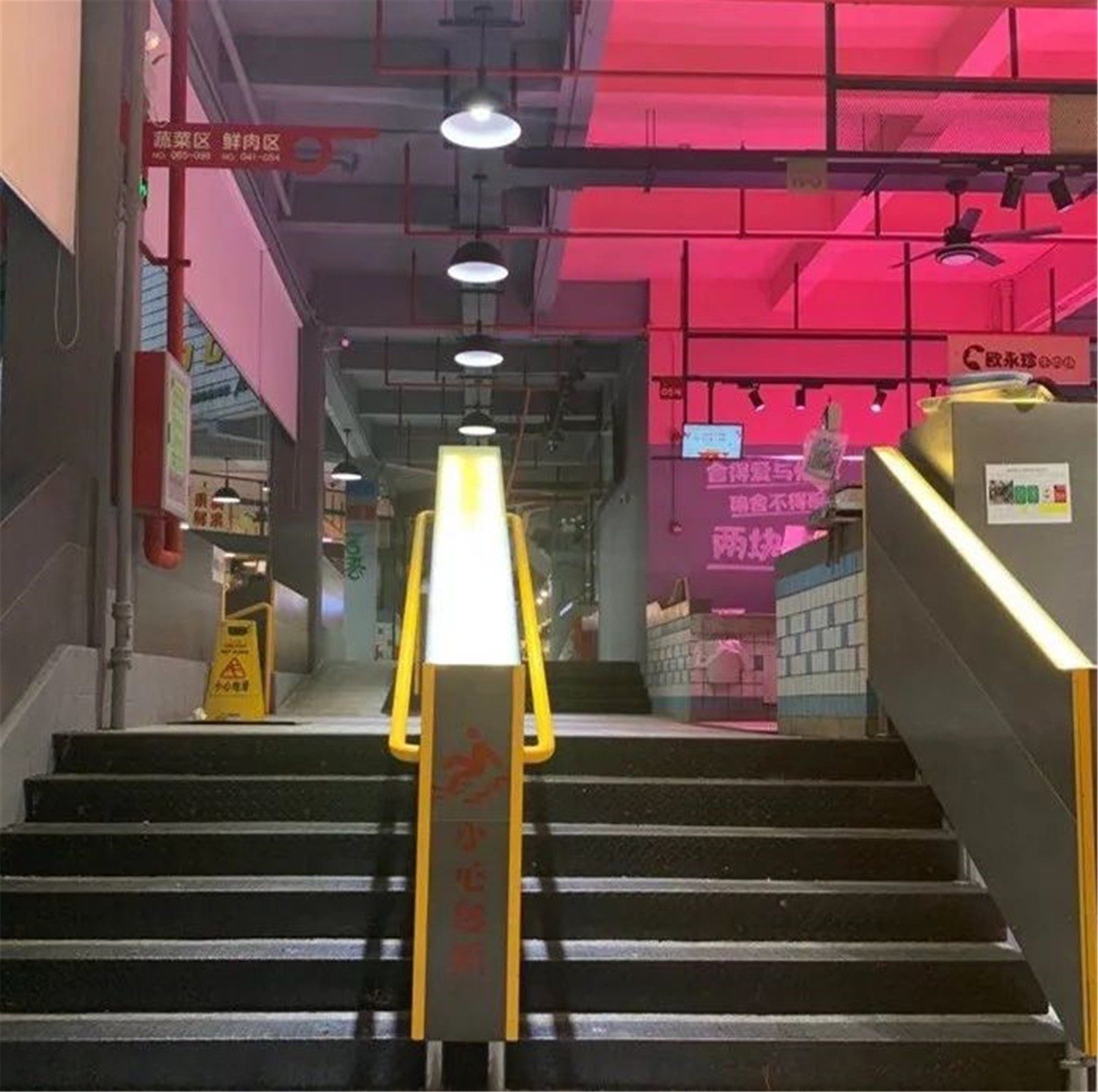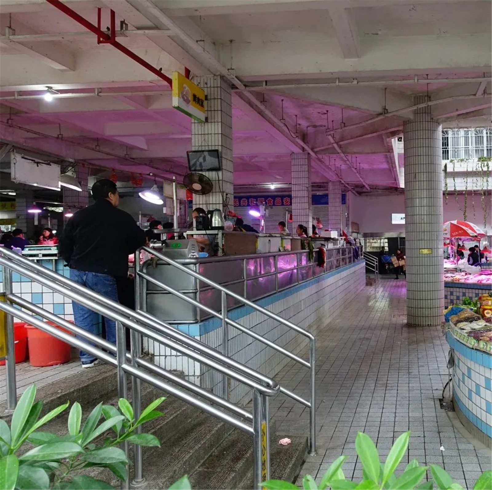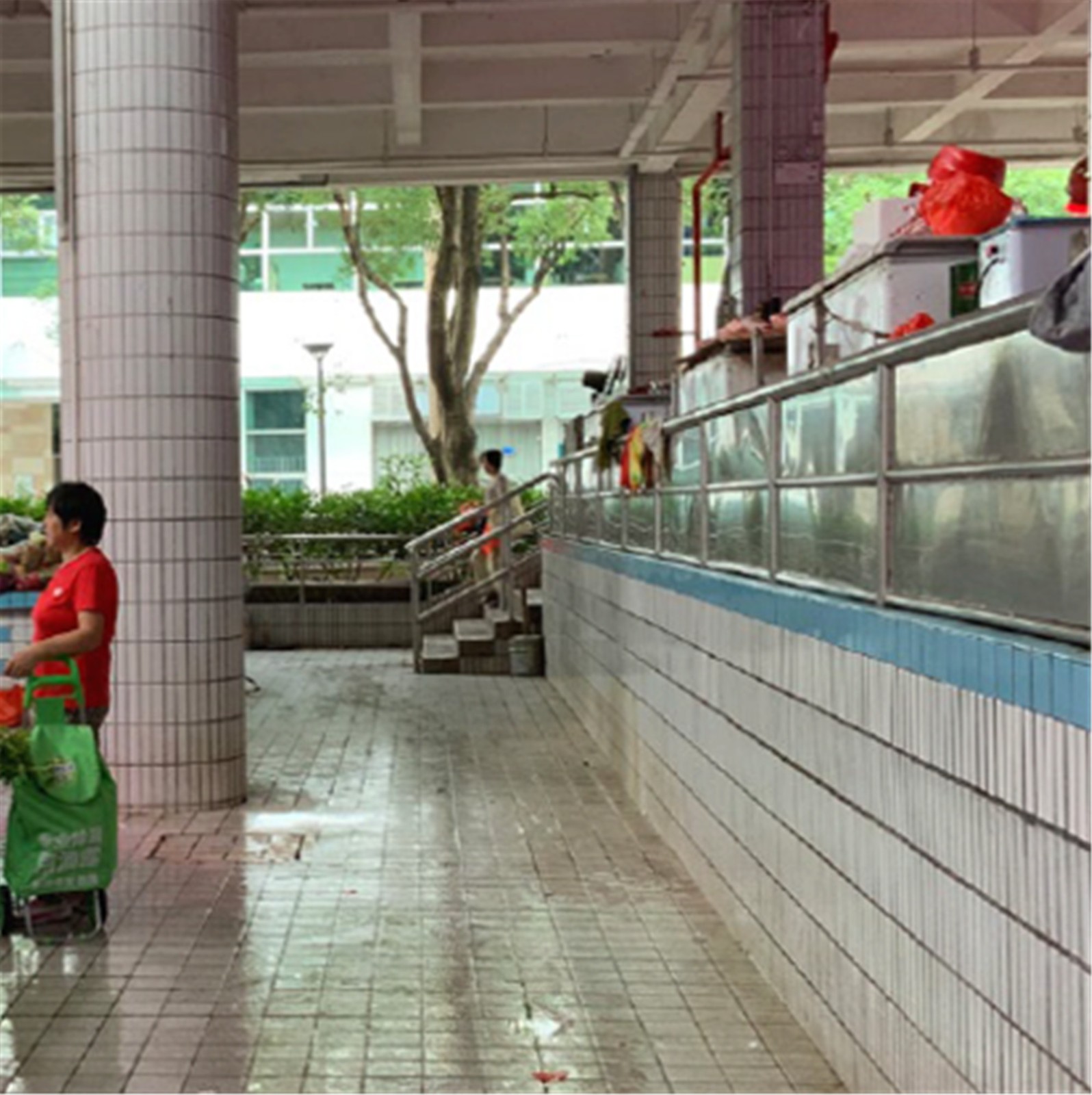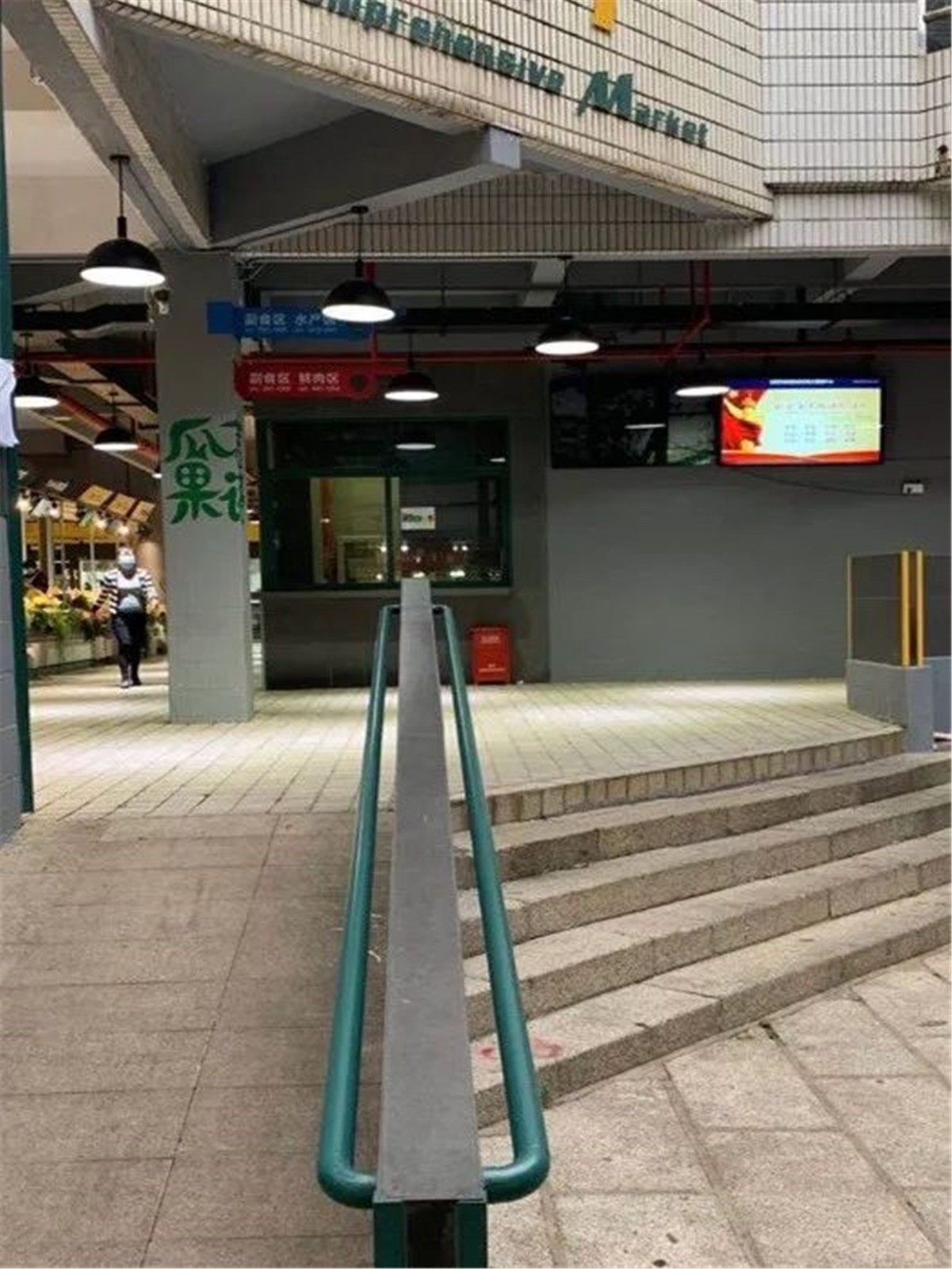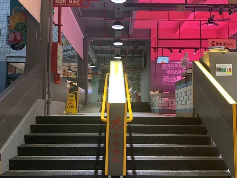 市場內(nèi)部分地面濕滑,流線混亂。內(nèi)部扶手老舊,影響市民日常消費,制約市政管理服務(wù)提升。
