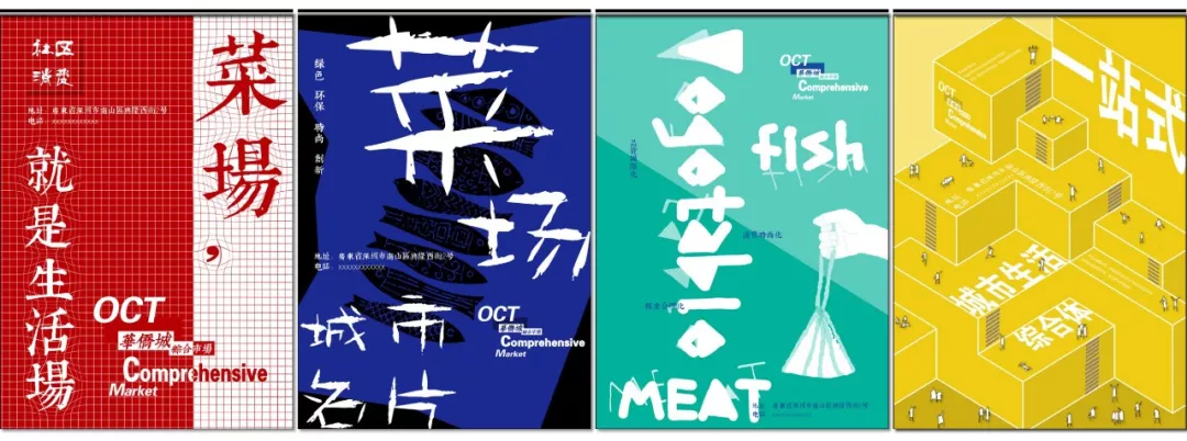 海報設(shè)計從食物中提取的紅、藍、綠、黃四色作為海報主色調(diào),通過考究的配色與主題文字,強調(diào)市場的態(tài)度與理念,從而引起消費者共鳴。