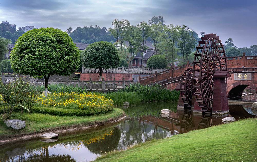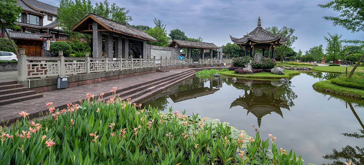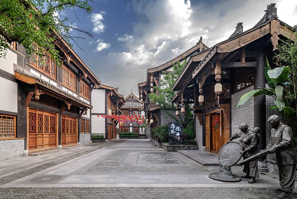景觀設(shè)計依托場地優(yōu)勢資源,梳理古嘉州文化脈絡(luò),以“福地景觀”為主題延伸,“兩線三軸四院落”的景觀構(gòu)成,形成“城中城,院中院”的觀覽路線,再現(xiàn)“嘉州版清明上河圖”人文古韻。