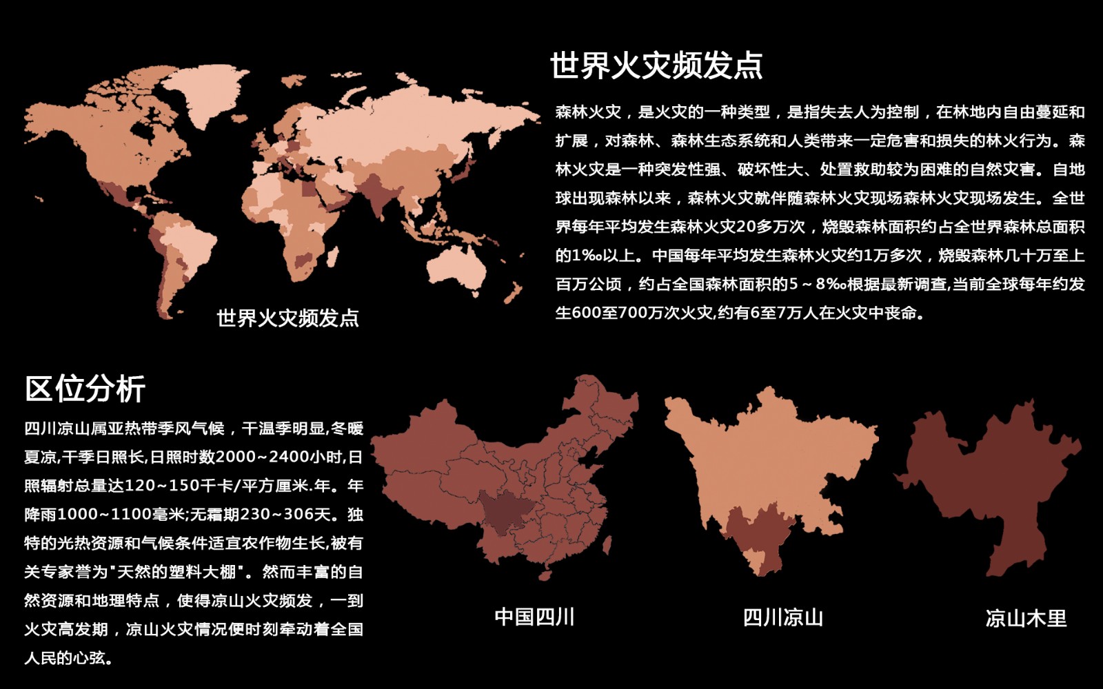 作品題目:防患于未然,愿山火不再——四川省涼山州木里縣森林火災(zāi)預(yù)防設(shè)計。