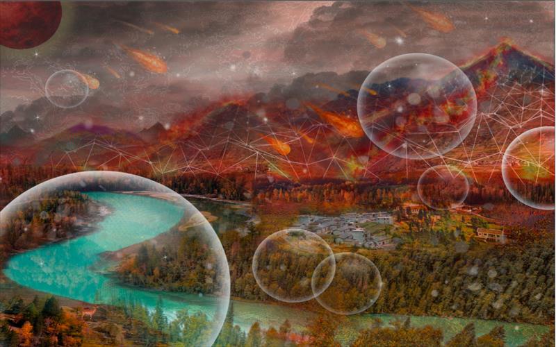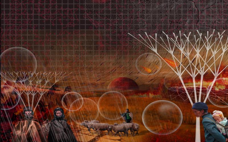 ▲ 效果圖(呈現(xiàn)木里經(jīng)歷火災(zāi)后落后、荒涼的景象) ? 鄢夢玲 詹芳芷 王婕 張靖怡 宋晨曦