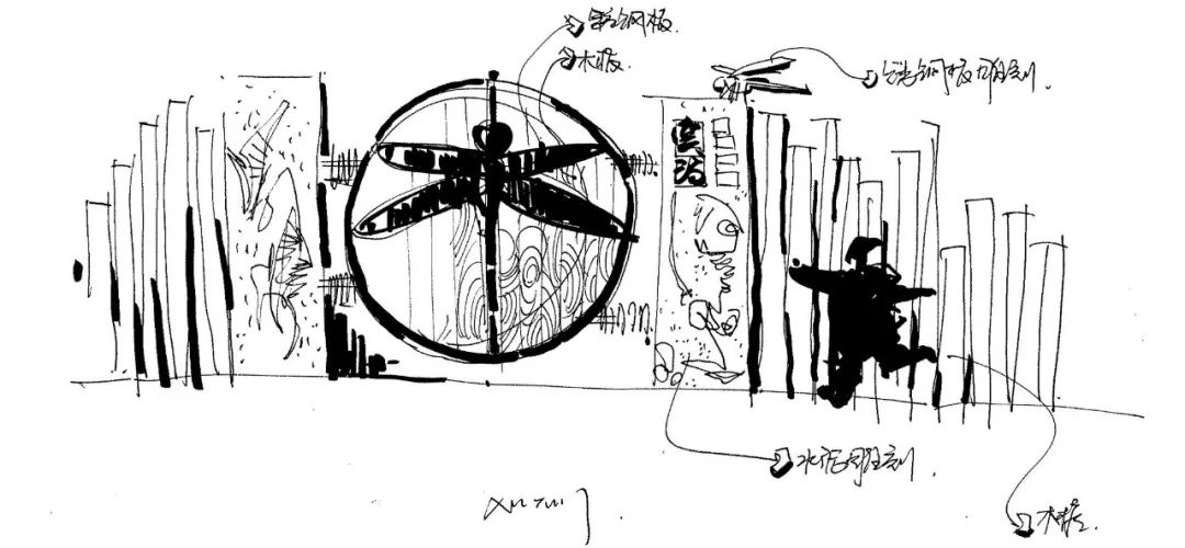 我們始終認(rèn)為,戶外空間環(huán)境的設(shè)計(jì)要最終通過(guò)體驗(yàn)者來(lái)驗(yàn)證。空間所呈現(xiàn)的生活,才是我們?cè)O(shè)計(jì)最終的模樣。樂(lè)園的使用者是兒童,從樂(lè)園啟幕就開(kāi)始了一項(xiàng)入園打卡的活動(dòng),孩子們用小木棒和夾子制作的彩色小蜻蜓,散落在樂(lè)園的各個(gè)角落,以使用者體驗(yàn)完成重構(gòu)閉環(huán),完成小蜻蜓與孩子的交互,也通過(guò)孩子的手,完成了我們的整個(gè)設(shè)計(jì)。