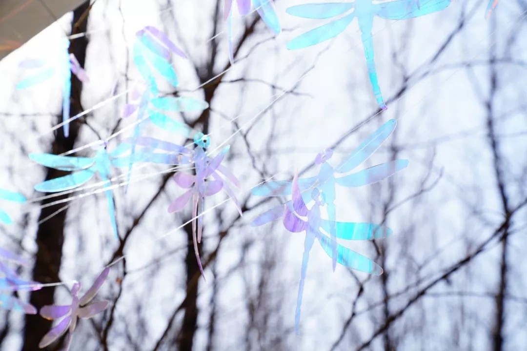 蜻蜓翅膀的色彩是另一個(gè)大自然的杰作,我們找到了一種新的鐳射膜材料來(lái)呈現(xiàn)它。200多個(gè)晶瑩透明又五彩繽紛的小蜻蜓成為了樂(lè)園中又一個(gè)焦點(diǎn)。