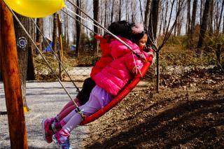 當(dāng)然,孩子也有孩子的樂(lè)趣,普通的秋千,讓孩子體驗(yàn)蜻蜓飛翔的感覺(jué),“楊柳垂青”“林立秋千”的簡(jiǎn)單快樂(lè)。