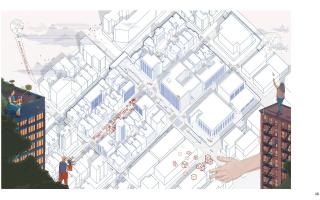 2019年6月以來(lái),香港暴力示威活動(dòng)不斷升級(jí),調(diào)查顯示主要的參與人群為香港受過(guò)基本教育的年輕基層白領(lǐng)。他們面對(duì)著眾多嚴(yán)峻的社會(huì)問(wèn)題,造成個(gè)體緊閉、人際關(guān)系疏離、與公共生活脫節(jié)及道德失范等鏈?zhǔn)椒磻?yīng)。社會(huì)學(xué)上,用“社會(huì)原子化”來(lái)定義該現(xiàn)象。本設(shè)計(jì)旨在將這一社會(huì)問(wèn)題放在城市層面討論。