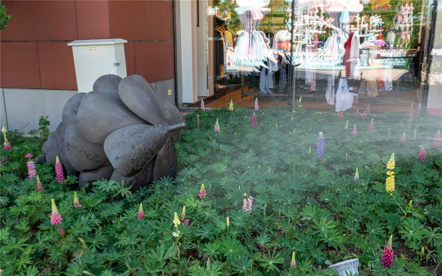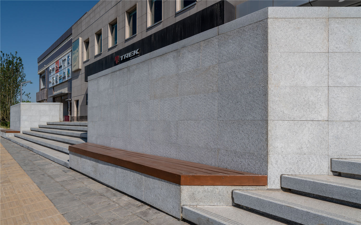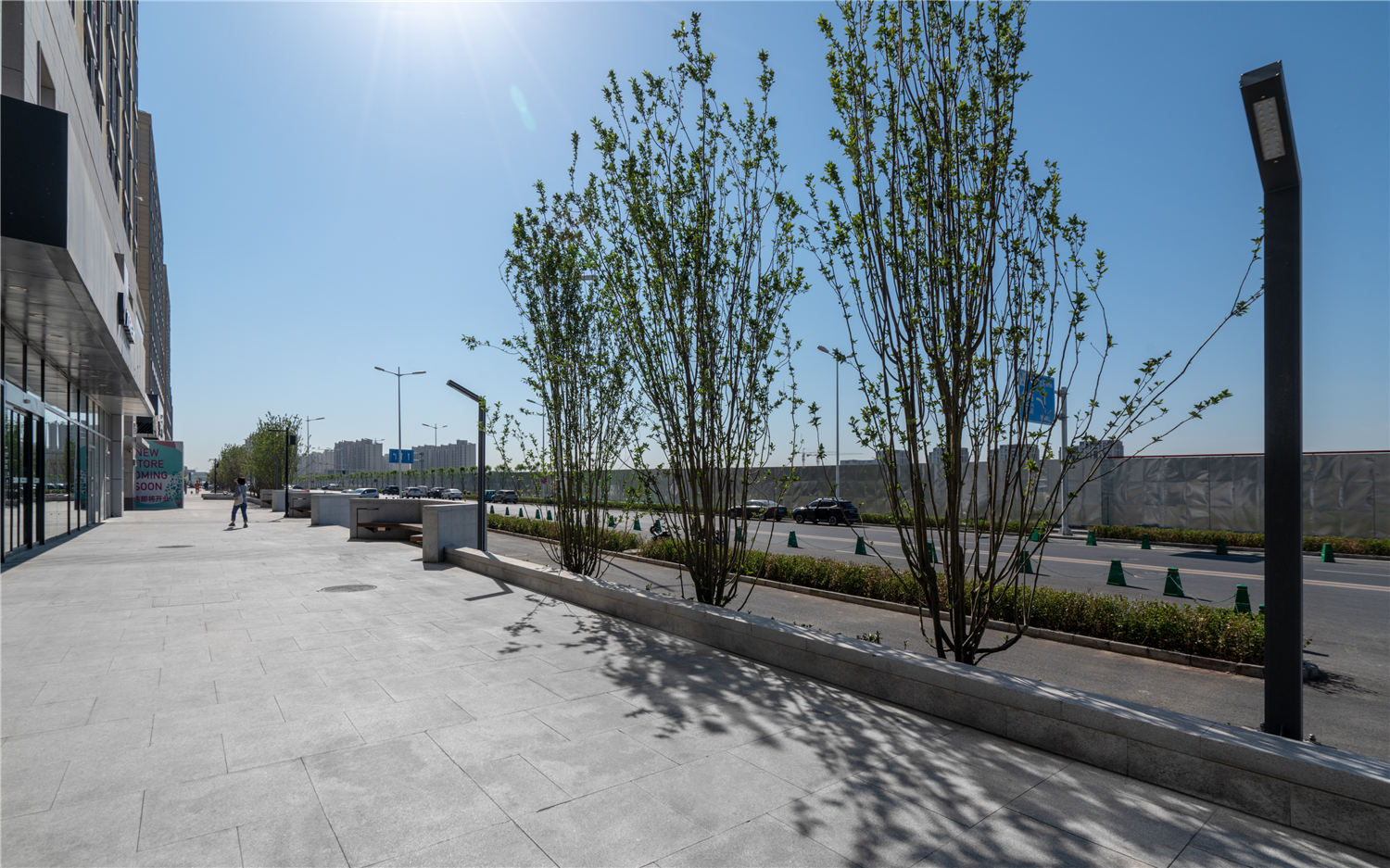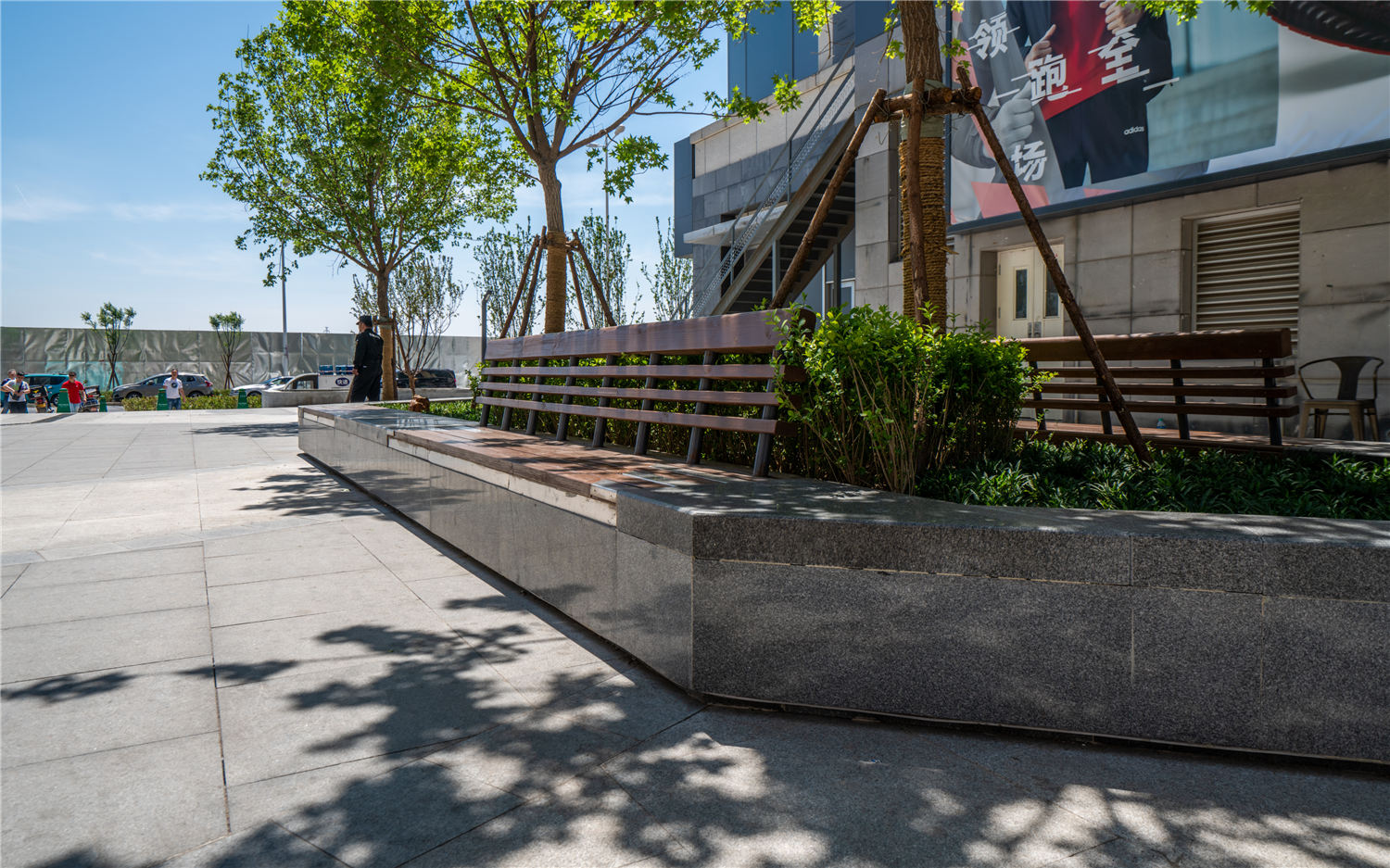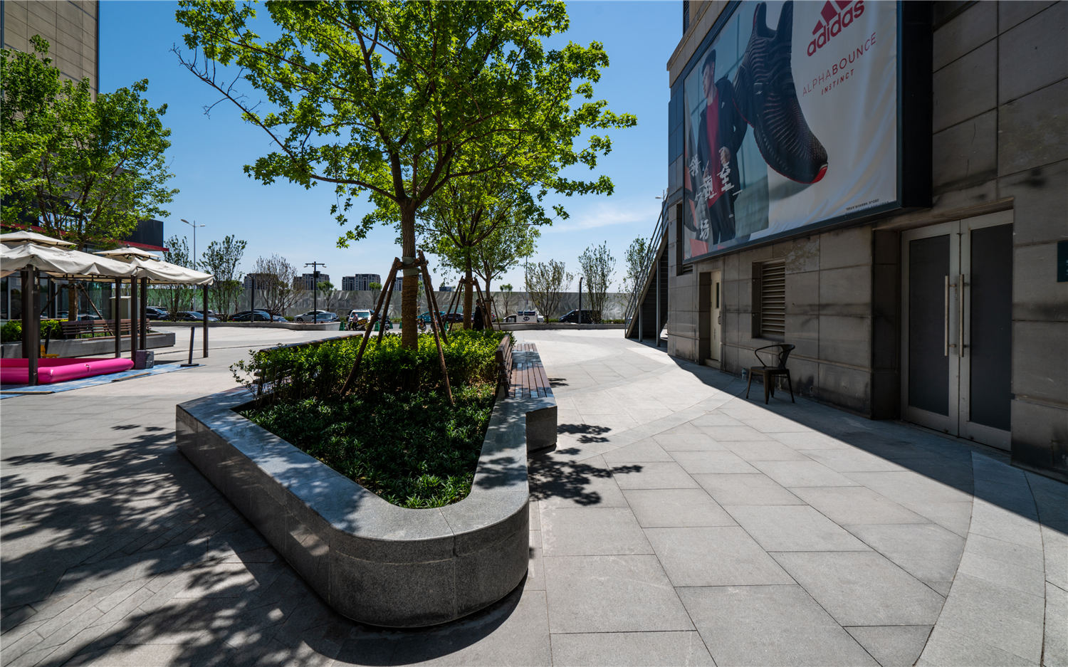 街區(qū)整體于2015年建成,隨著商業(yè)街區(qū)的發(fā)展和品牌升級(jí),對(duì)環(huán)境空間的需求逐步提升,本項(xiàng)目即在此基礎(chǔ)上進(jìn)行空間更新設(shè)計(jì)。本項(xiàng)目位于已建成商業(yè)街區(qū)的西南邊界,是平均寬度7米、總面積2145平方米的帶狀空間,作為2018年商業(yè)街區(qū)整體更新計(jì)劃中的一個(gè)分項(xiàng),已于2018年12月建設(shè)完成。