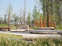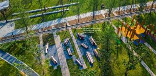 The design maximized the remaining railway that used to transport wood, connecting wood culture nodes and serving as a remembrance of the area’s transportation heritage. The park features a log-pile maze, log-pile entertainment park, river corridors for wood-storage and educational exhibits which provide natural play opportunities for park visitors. The wood framework preserves the site’s wood culture in another form, becoming a gathering space for neighboring residents, and serving as a connecting link between the past and future of Shaheyuan Park.
