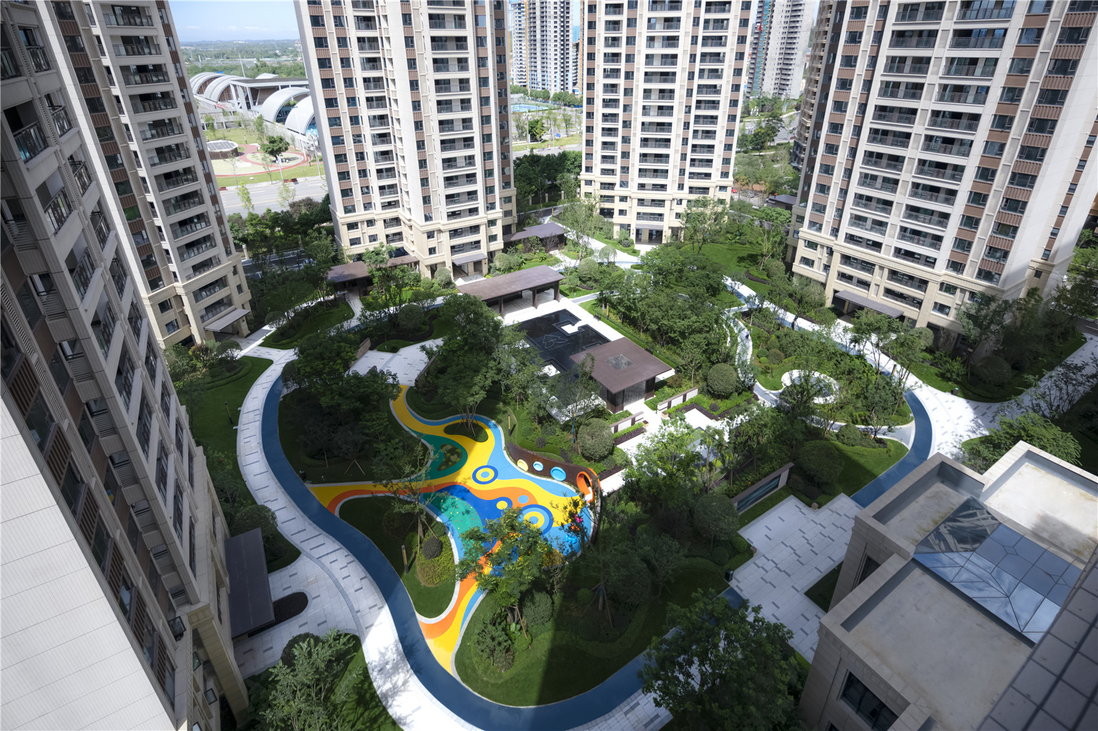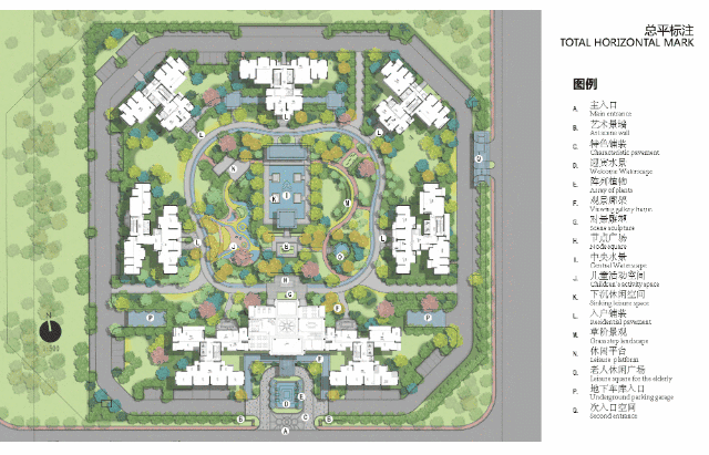 項(xiàng)目由8棟建筑圍合形成一個開闊大中庭,成為該項(xiàng)目一大亮點(diǎn)。