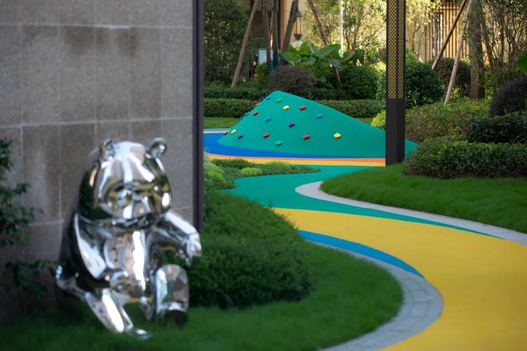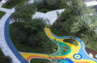 情景藝術(shù)花園、靜謐休閑花園、兒童樂園與康養(yǎng)樂園,這四個功能空間均勻分布在中庭周邊。