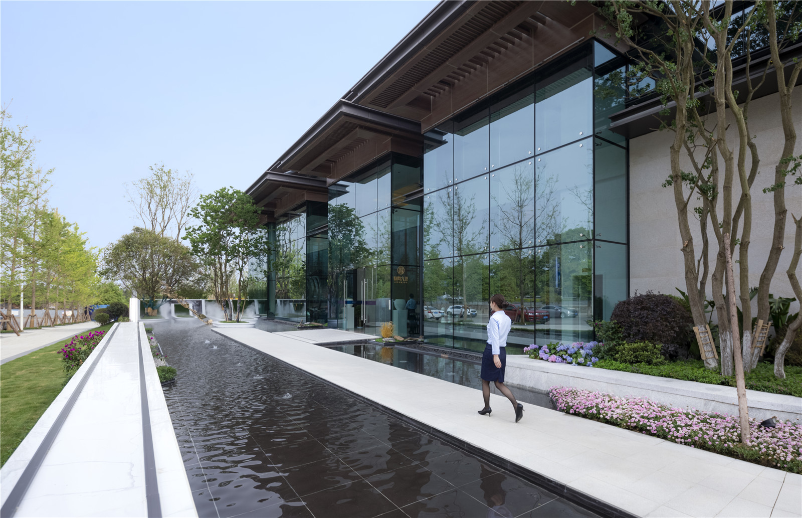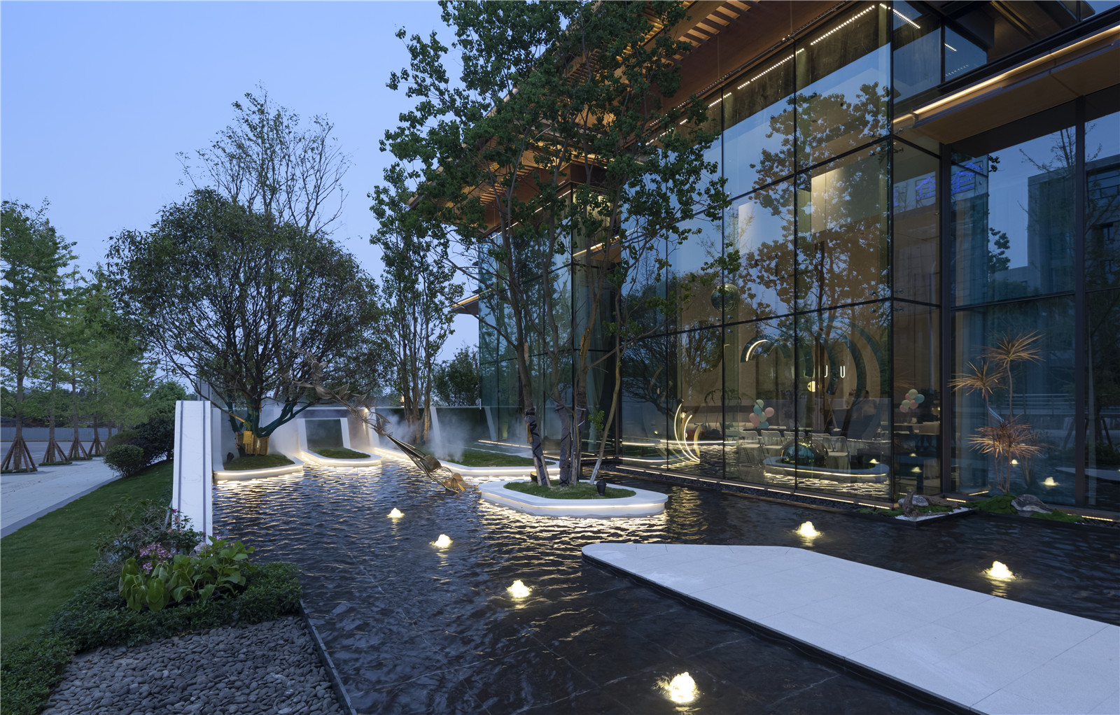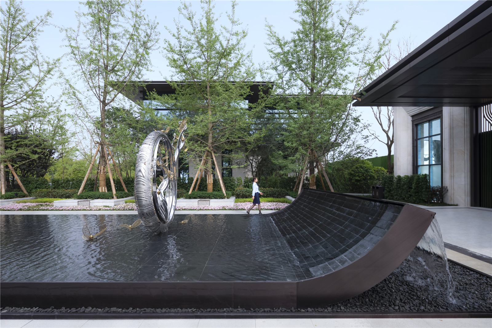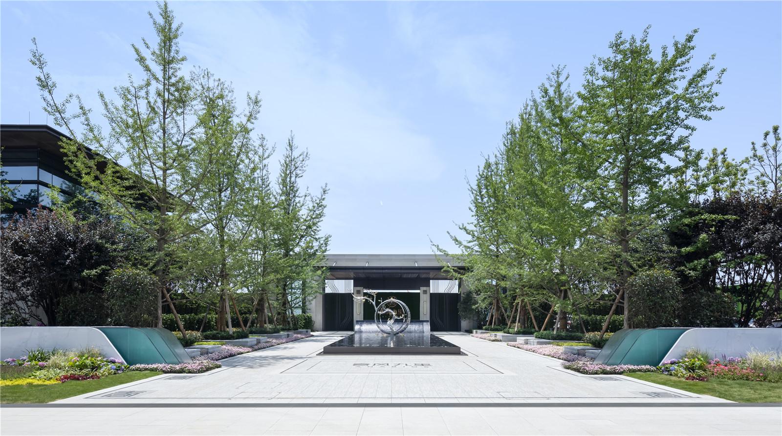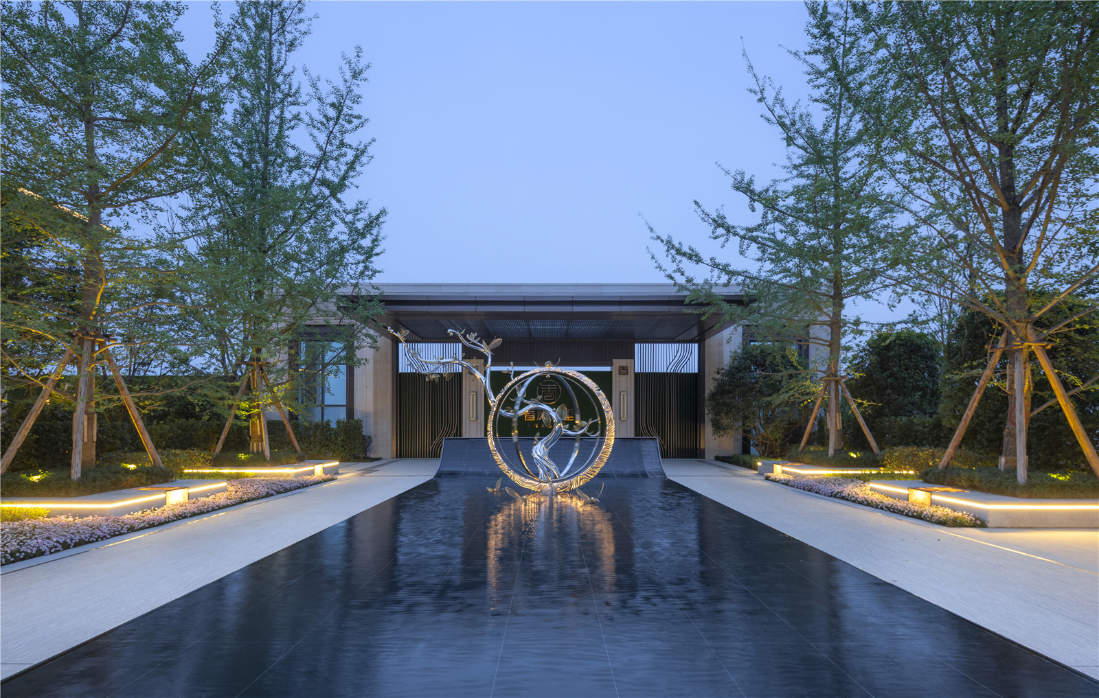 歸家禮儀系統(tǒng)——永久景觀大區(qū)入口,將交付區(qū)入口場景真實(shí)融入示范區(qū)景觀中,體現(xiàn)了本項(xiàng)目的昭示性和歸家儀式感,也充分體現(xiàn)示范區(qū)所見即所得的景觀體驗(yàn)。