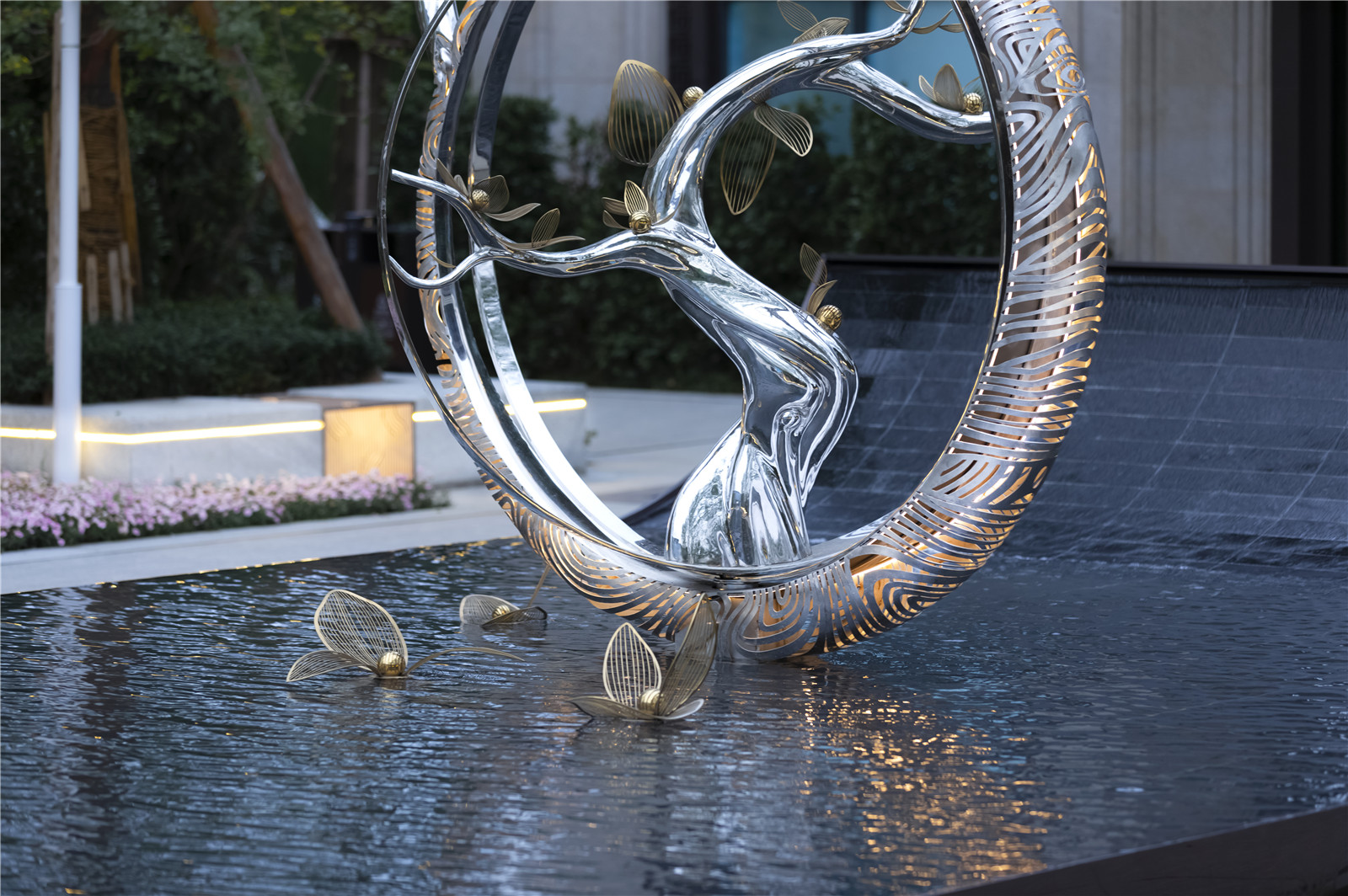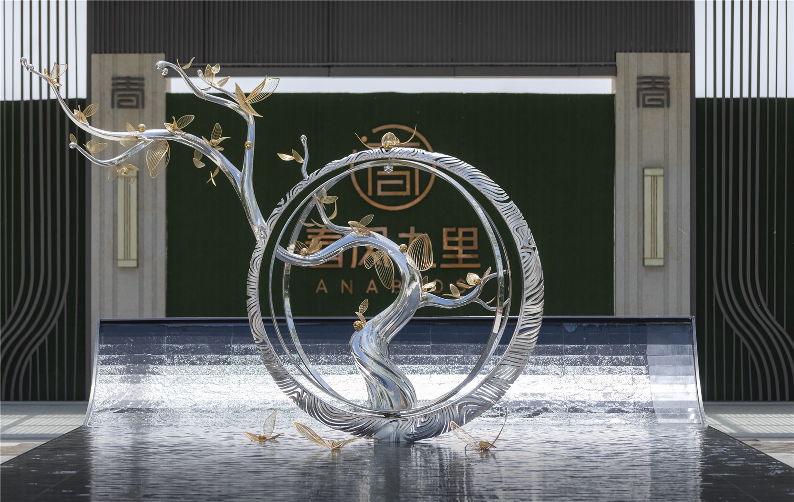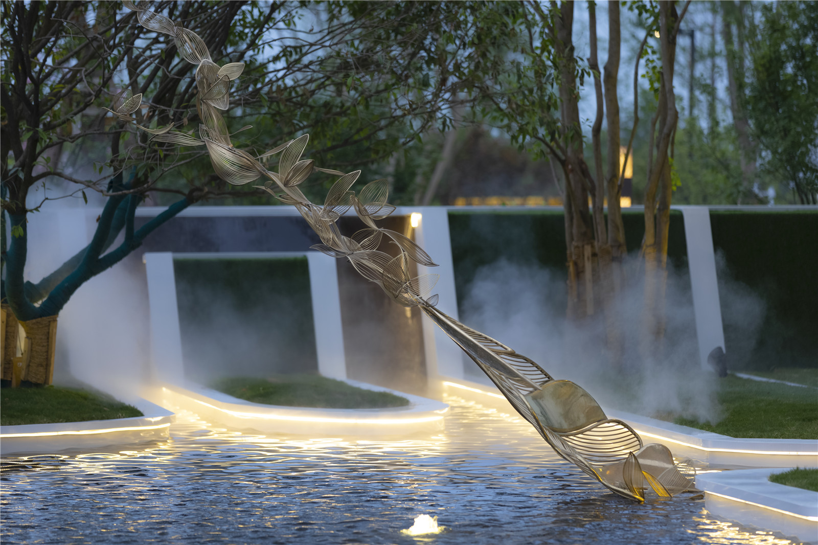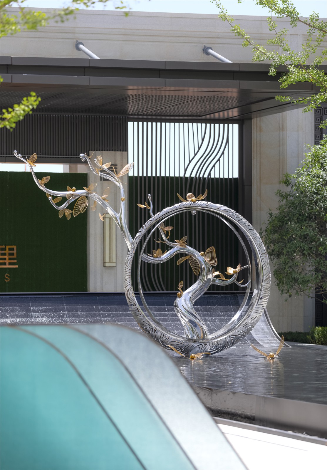 網(wǎng)紅打卡記憶點(diǎn)——入口鳳起朝鳴-雕塑景觀,雙環(huán)旋轉(zhuǎn)立體雕塑,順時(shí)針和逆時(shí)針分別代表回望過去承載未來,“春”給大地帶來無限生機(jī)。