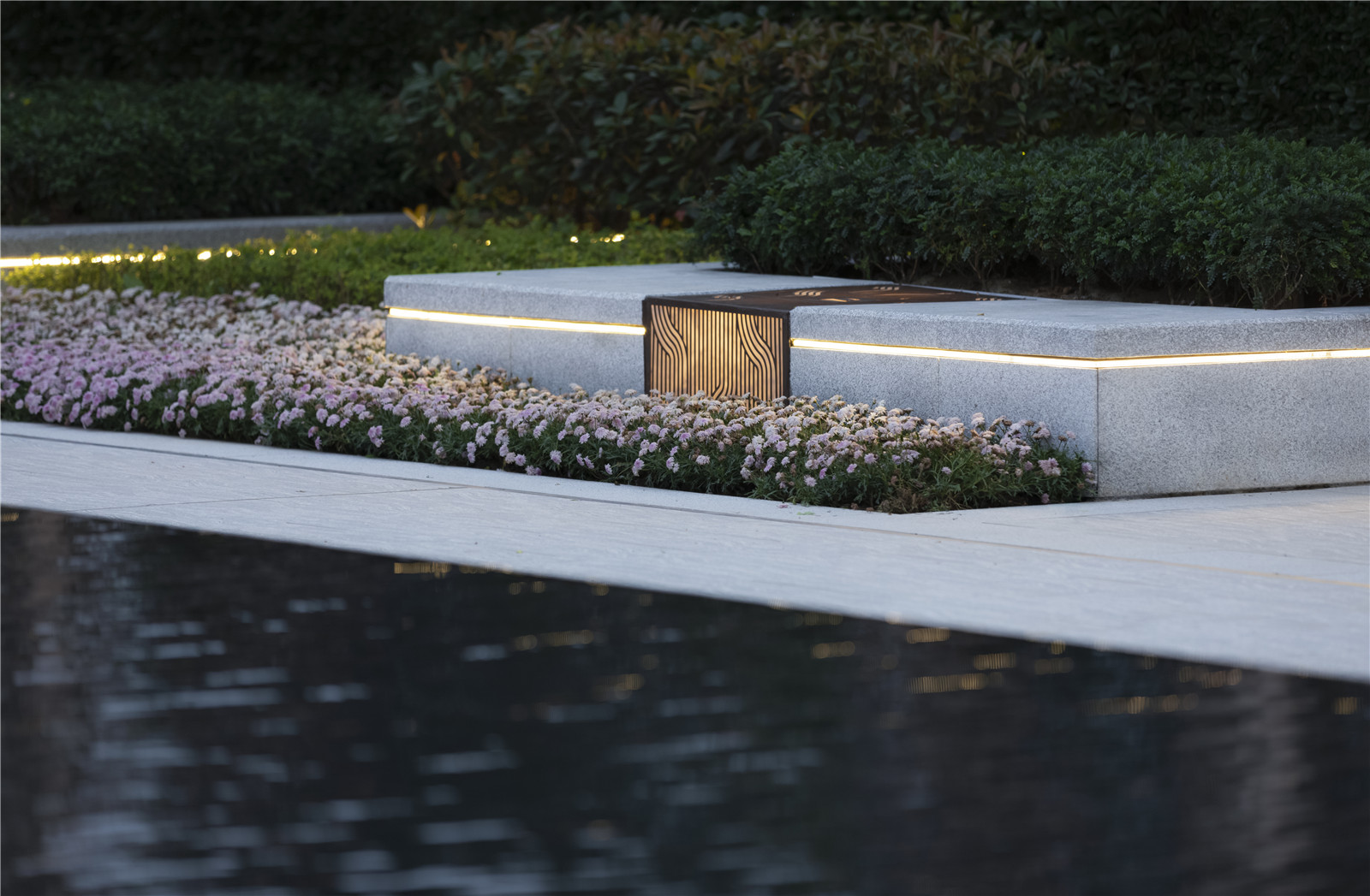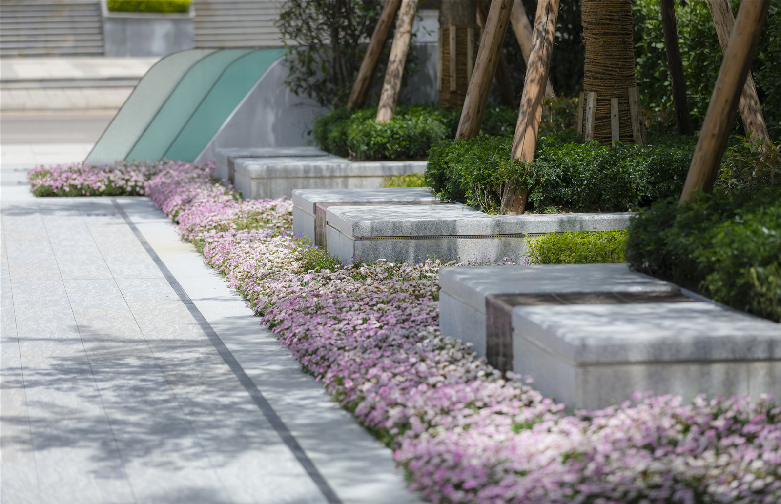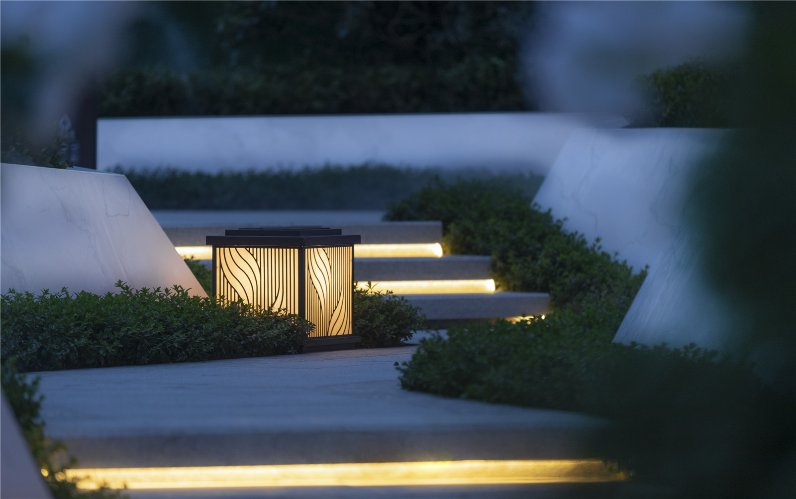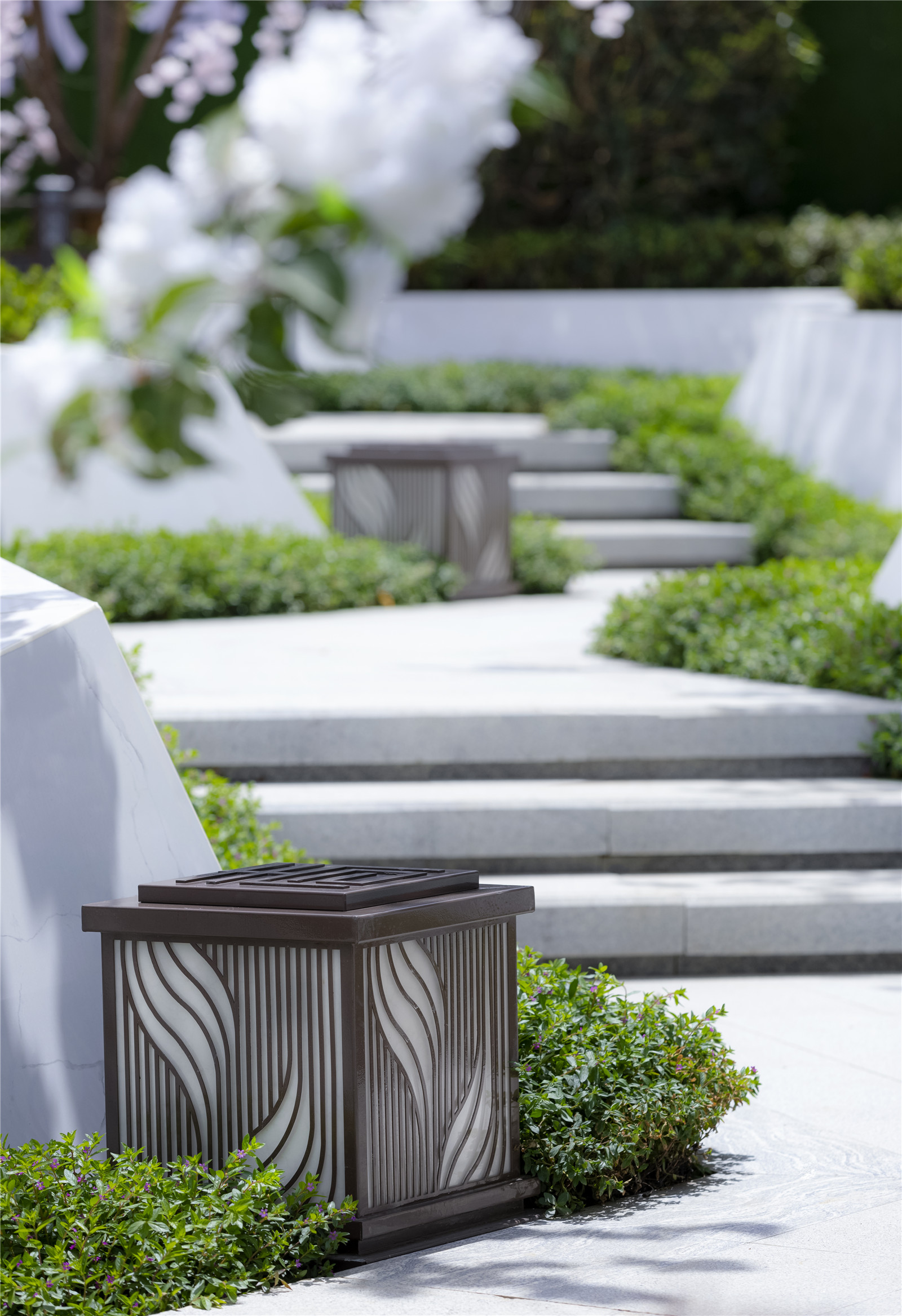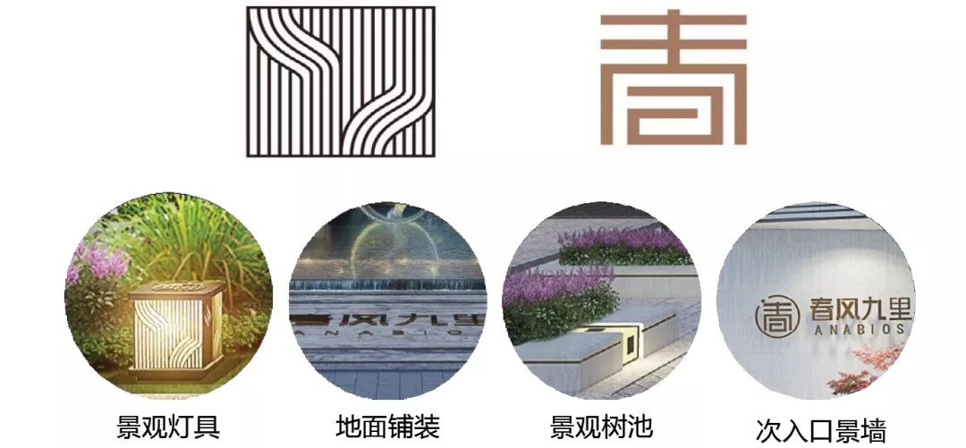 家族符號(hào)運(yùn)用——提取“春風(fēng)系”春風(fēng)九里中的“春”字,運(yùn)用在重要景觀界面:如景觀燈具、鋪裝轉(zhuǎn)角、門頭、景墻面印章、雨篦子等,將植入產(chǎn)品系家族符號(hào)完善的產(chǎn)品品牌設(shè)計(jì)理念,在景觀中進(jìn)行體現(xiàn)和展示,向業(yè)主傳遞品牌價(jià)值及尊崇感。