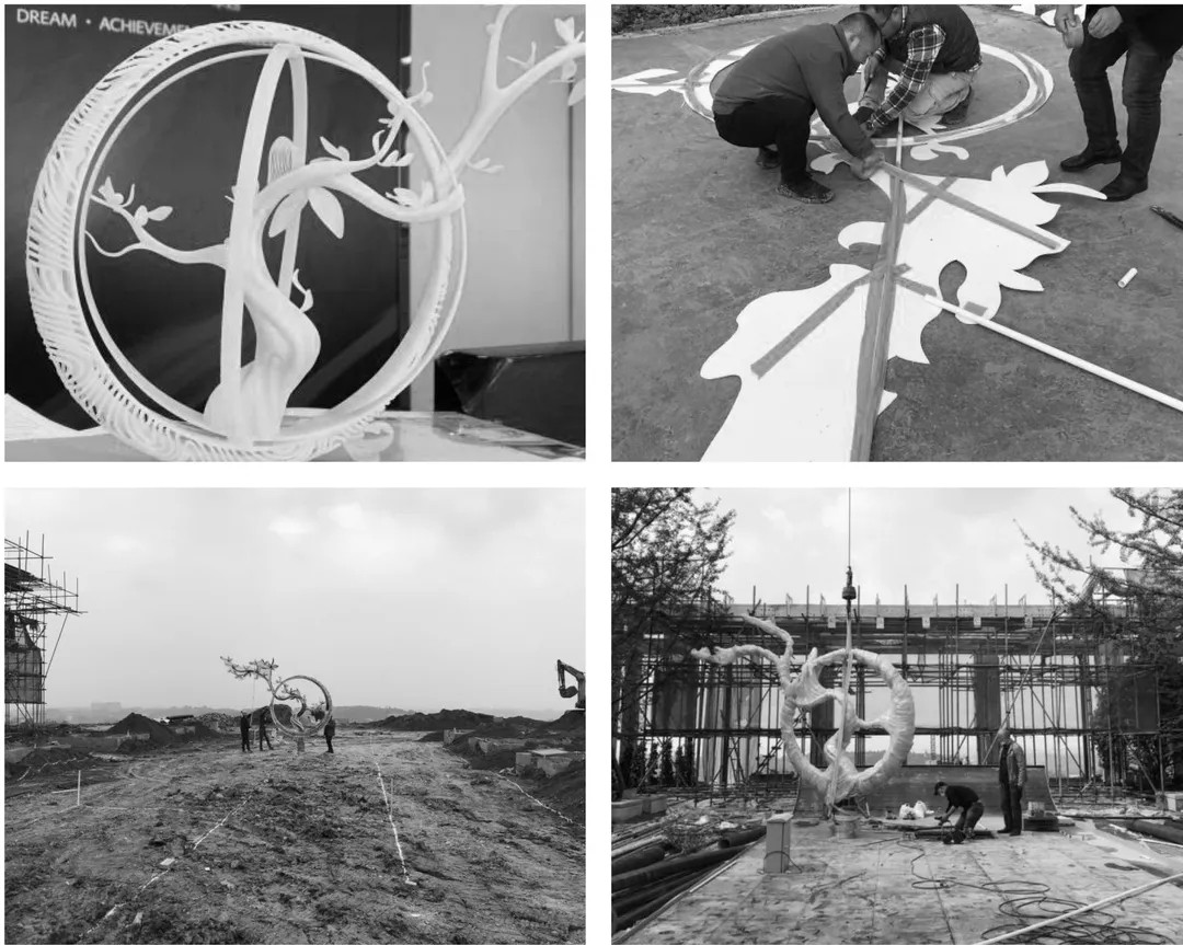 ▲“鳳起朝鳴-雕塑”打樣定樣安裝過程