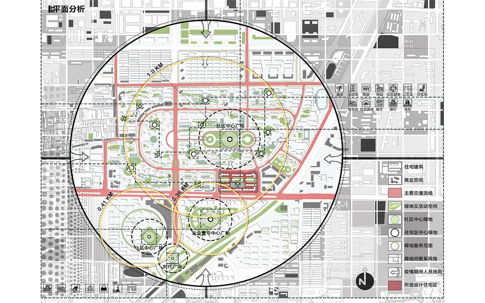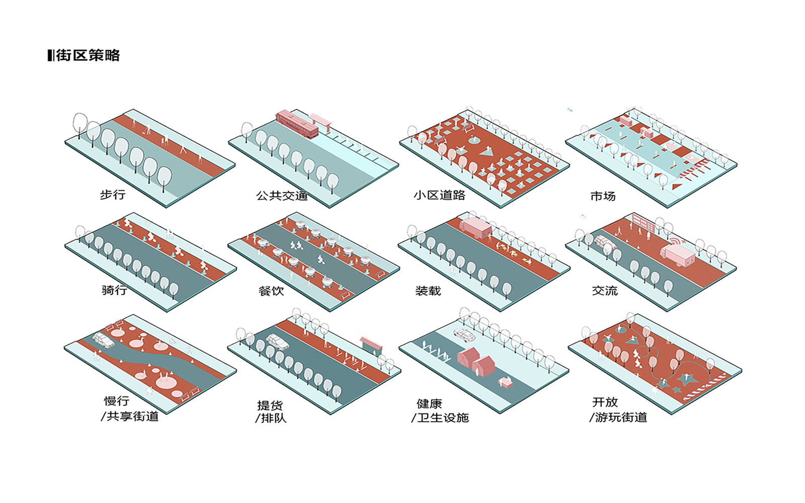 2.街區(qū)層—在疫情后的社交距離時(shí)代,思考可持續(xù)型街道,滿足街道的人群活動(dòng)需求。