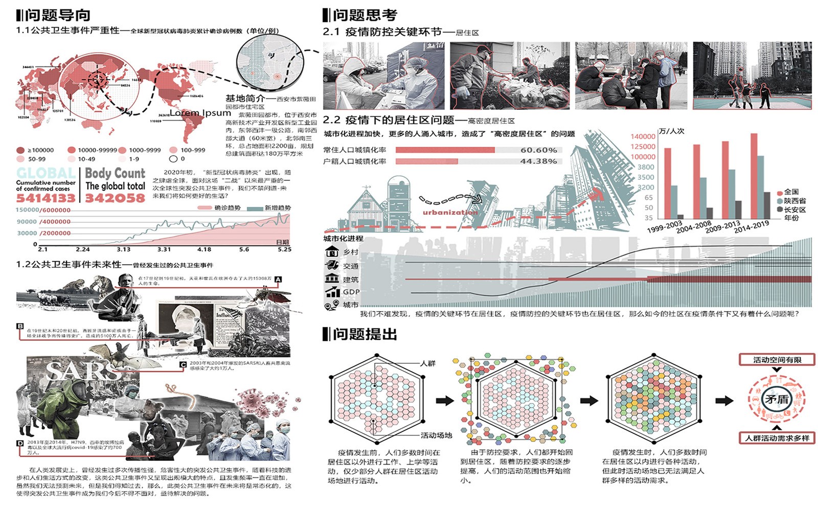 該作品主要為疫情瞬時(shí)狀態(tài)下社區(qū)高密度人群的活動(dòng)空間進(jìn)行彈性設(shè)計(jì)。