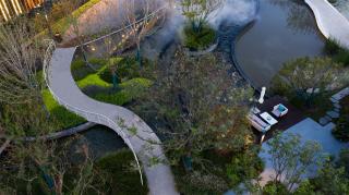 The Water Drop Lake is not only a continuation of the memory about the site, but also an important part of wetland ecosystem of China-Singapore Eco-city. The Lake and the aquatic plants therein provide habitats for fish, insects and amphibians, and also become the "ecological stepping stones" for migratory birds in their migration way. People living here can explore the nature along the floating bridge and through the reeds, which will become the memory of every resident.