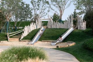 For the children born in the Internet era, surrounded by exquisite toys and abundant materials, nature-friendly play space is the best gift for them to grow up. The playground here simulates the landform of hill, wood and mud flat in Bohai Bay, with slide built in the wood of hill and dry stream connecting activity sites. The design minimizes industrial materials and replaces them with organic and natural materials, so that the children can touch sand, stones and flowers, step on fallen trees and big rocks, look for unique animal friends in Bohai Bay in the animal maze, and learn about the complexity of the ant world in the soil classroom, feel and learn in games, know the land where they grow and love their homeland.
