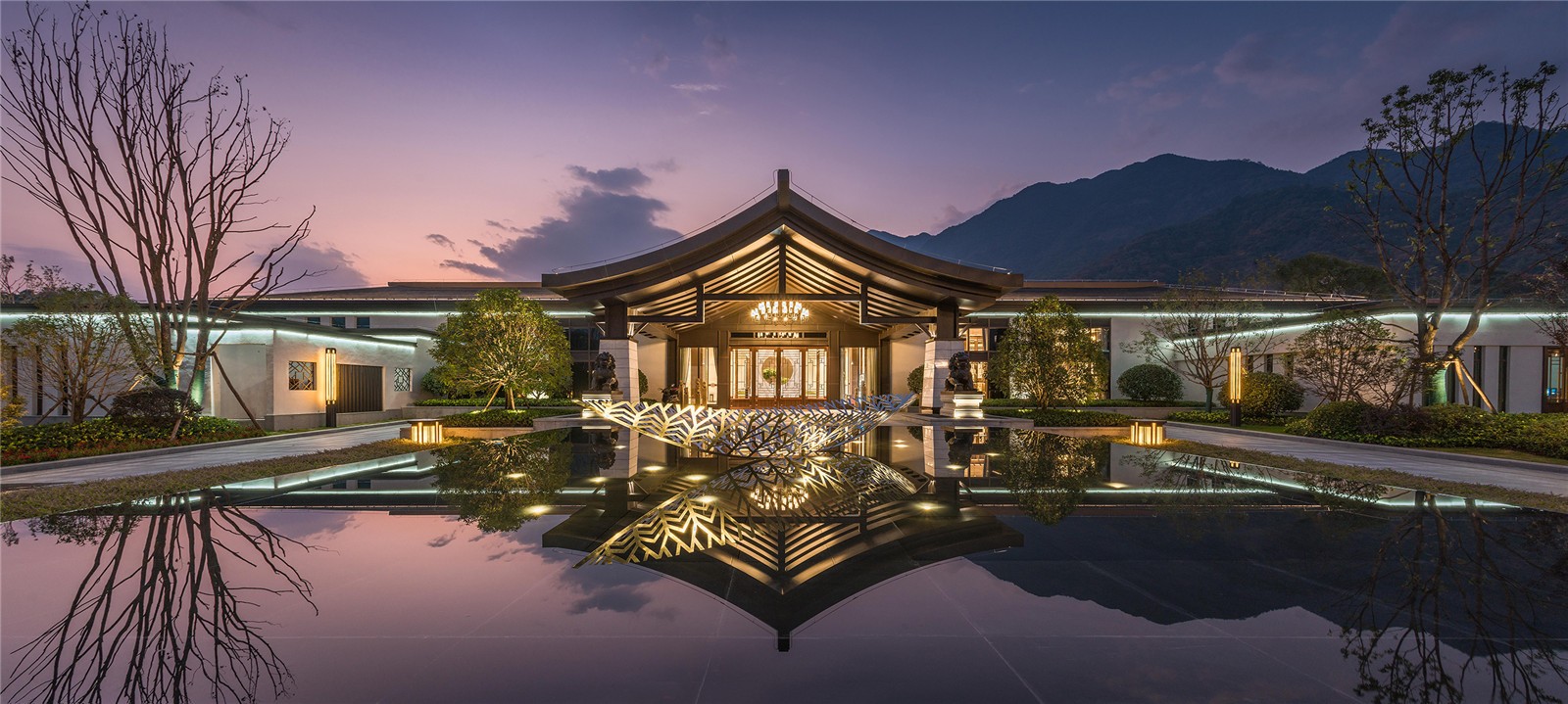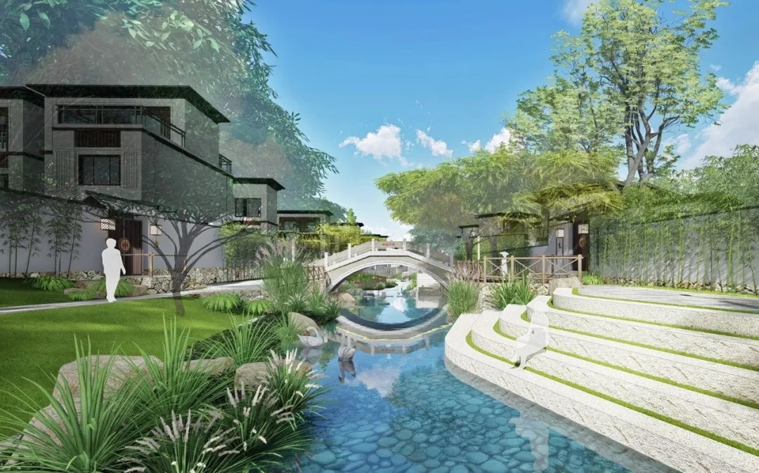 為了實(shí)現(xiàn)這樣的桃花源,設(shè)計(jì)師將景觀格調(diào)以清新自然為主,嵌入中國(guó)傳統(tǒng)韻味的色彩、圖案符號(hào)和植物空間等,來(lái)打造具有中國(guó)韻味的現(xiàn)代景觀度假空間。