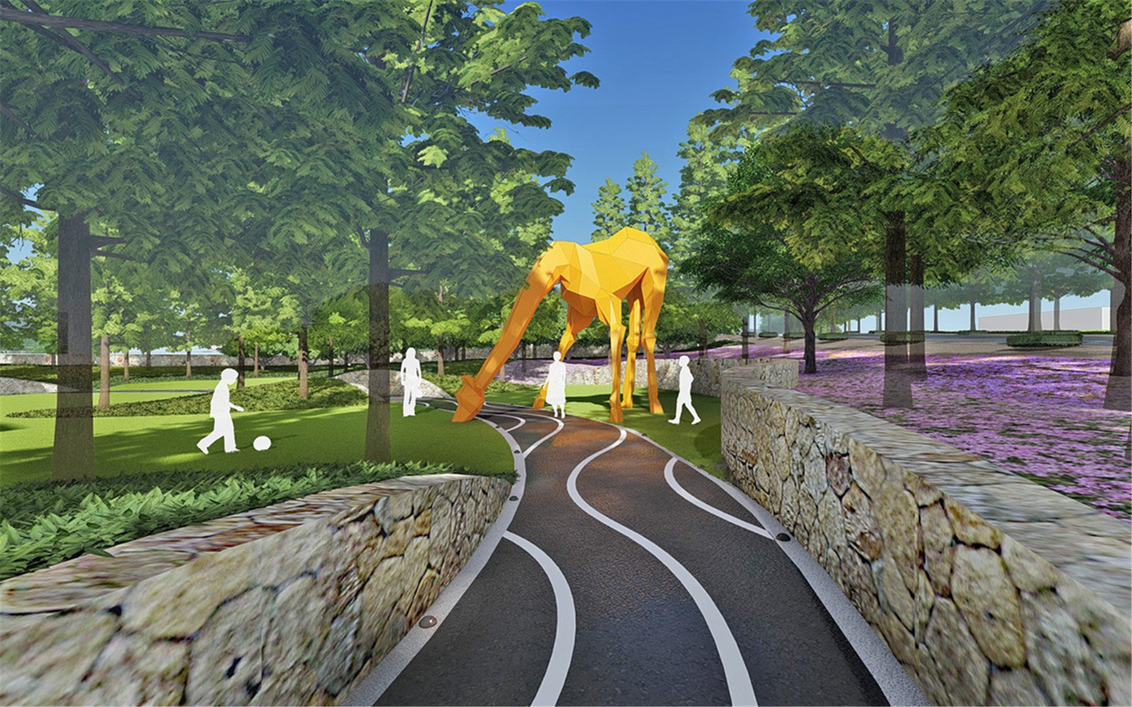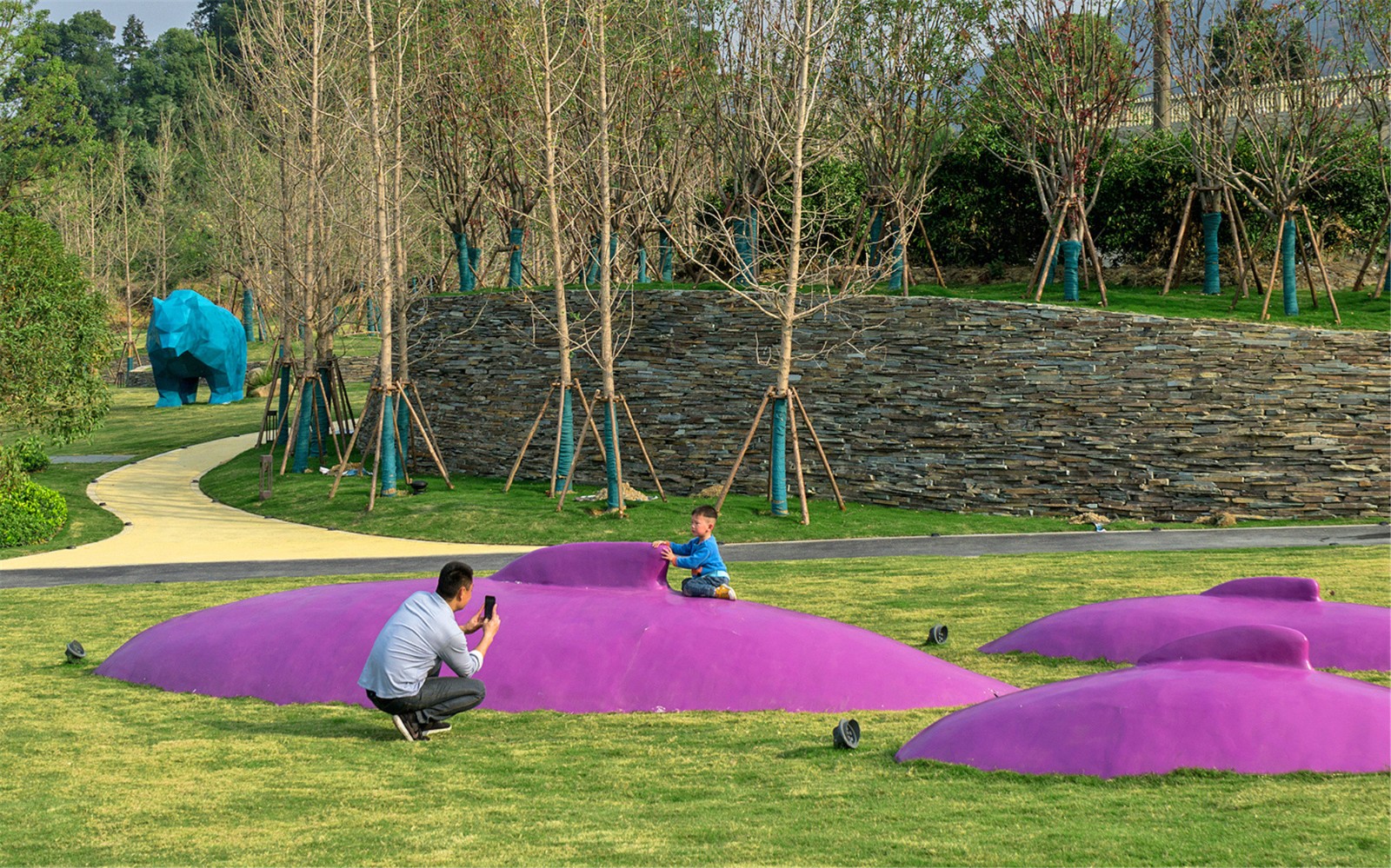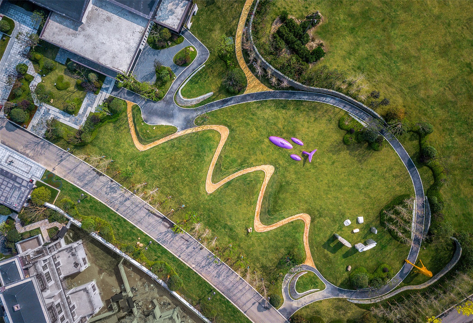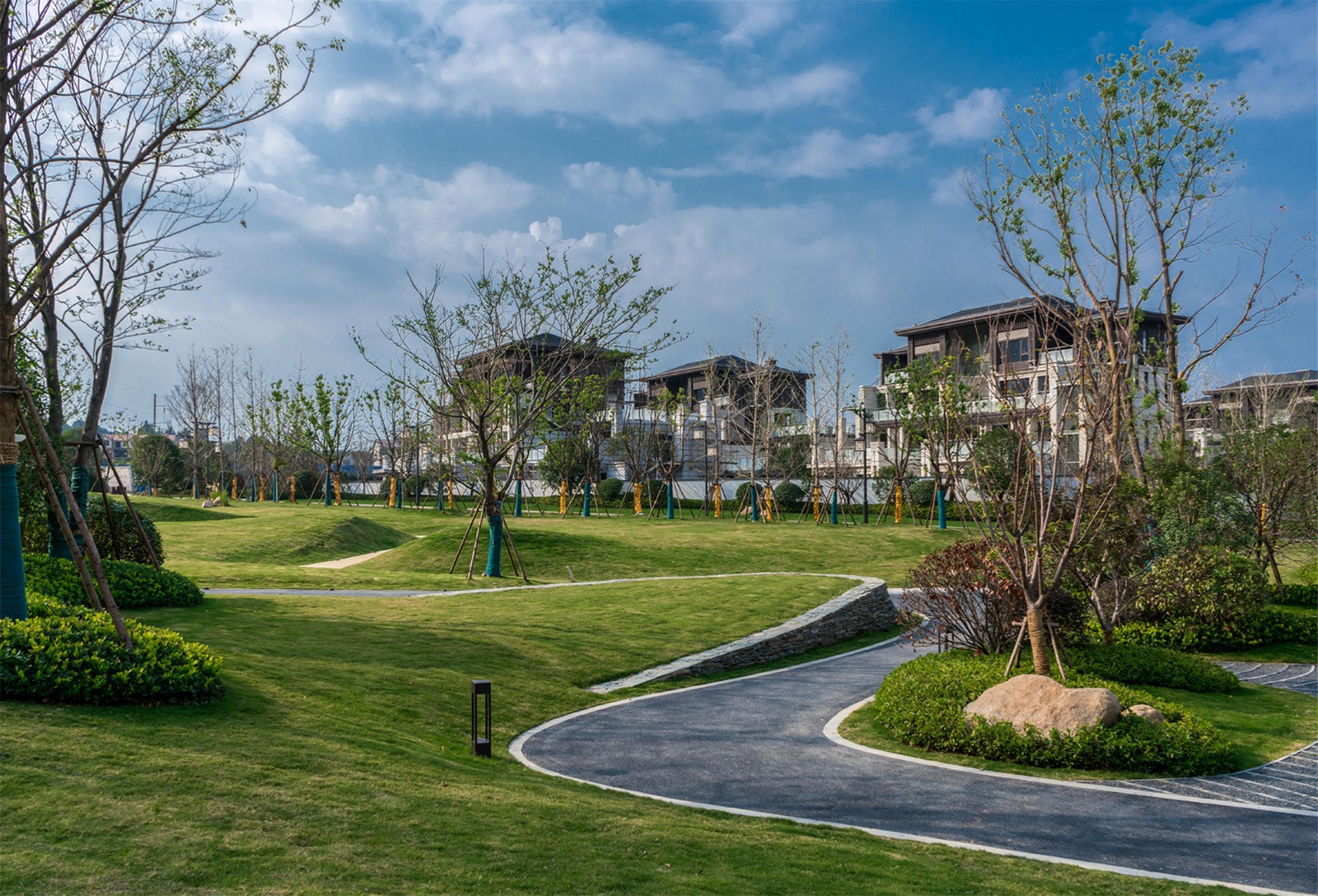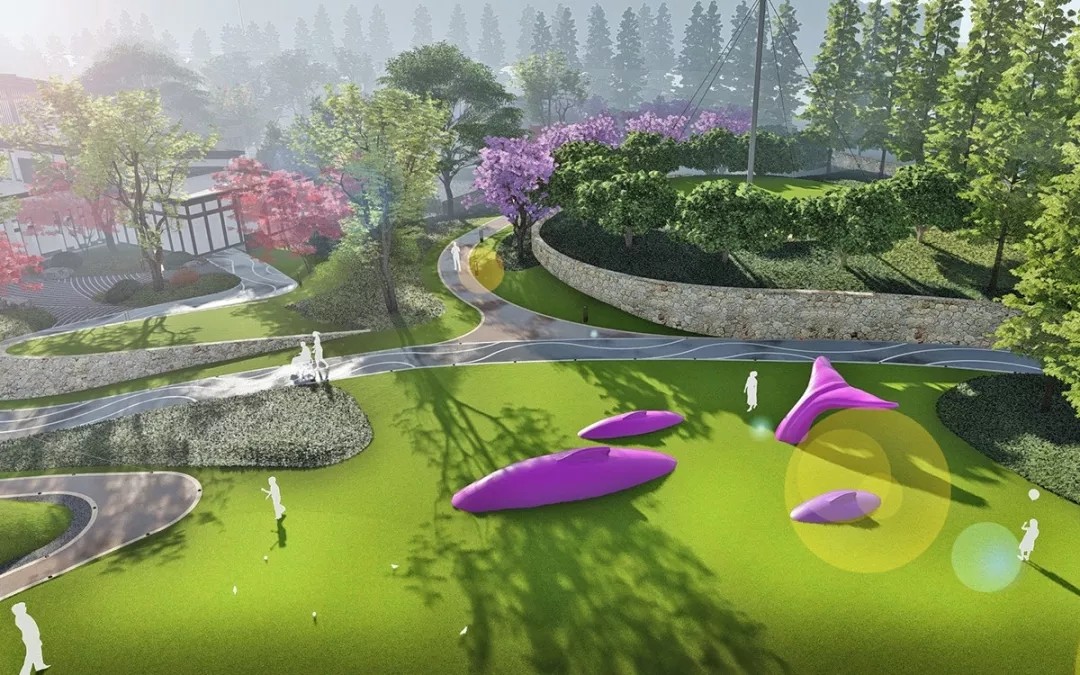 度假時(shí)光總是伴隨著愜意的漫步及互動(dòng)時(shí)光,草坪上的蜿蜒小路,穿插著高低起伏的草坡藝術(shù)地形,孩子們可爬可跑,嬉戲打鬧,情趣盎然,留下美好童年時(shí)光。