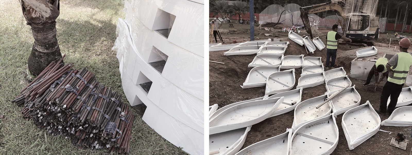 The given construction period is extremely short (one month), with which the module system (composed of total 335 aluminium planters) work perfectly. We have optimized the installation details of the two trellis, which are assembled without welding. With these helps we have been able to complete the construction/installation in advance, when others are still working hard in completing. The extra time has been used for plant maintenance to better prepare for the opening. However the construction process has not been easy. There are learn curves within each step of construction.