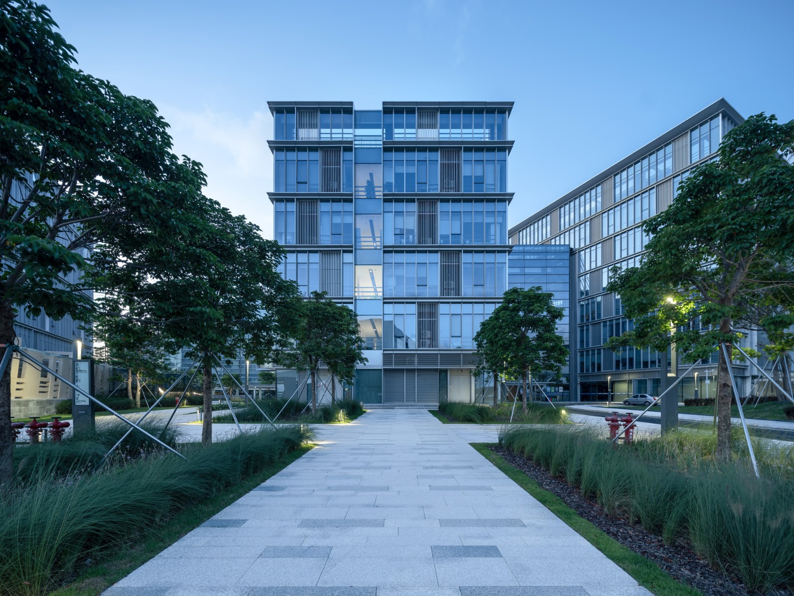 產(chǎn)業(yè)服務(wù)中心的綠地種植遵循通透、舒朗的配置原則設(shè)計(jì),上層以小葉欖仁、秋楓等樹(shù)形姿態(tài)佳的喬木為骨干樹(shù)種,點(diǎn)綴紫花風(fēng)鈴木、美麗異木棉等開(kāi)花點(diǎn)景喬木,灌木層以低維護(hù)的大片觀賞草類做基底,不遮擋人行視線。