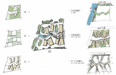 設(shè)計(jì)延續(xù)了建筑的布局形態(tài)和結(jié)構(gòu)線條,簡(jiǎn)潔清晰方向明確,以水、石、木等自然元素的“融匯”呈現(xiàn)主題氛圍,跌級(jí)臺(tái)地的雨水花園在提供休息空間的同時(shí),起到雨水滯滲作用,減輕了場(chǎng)地的排水壓力。