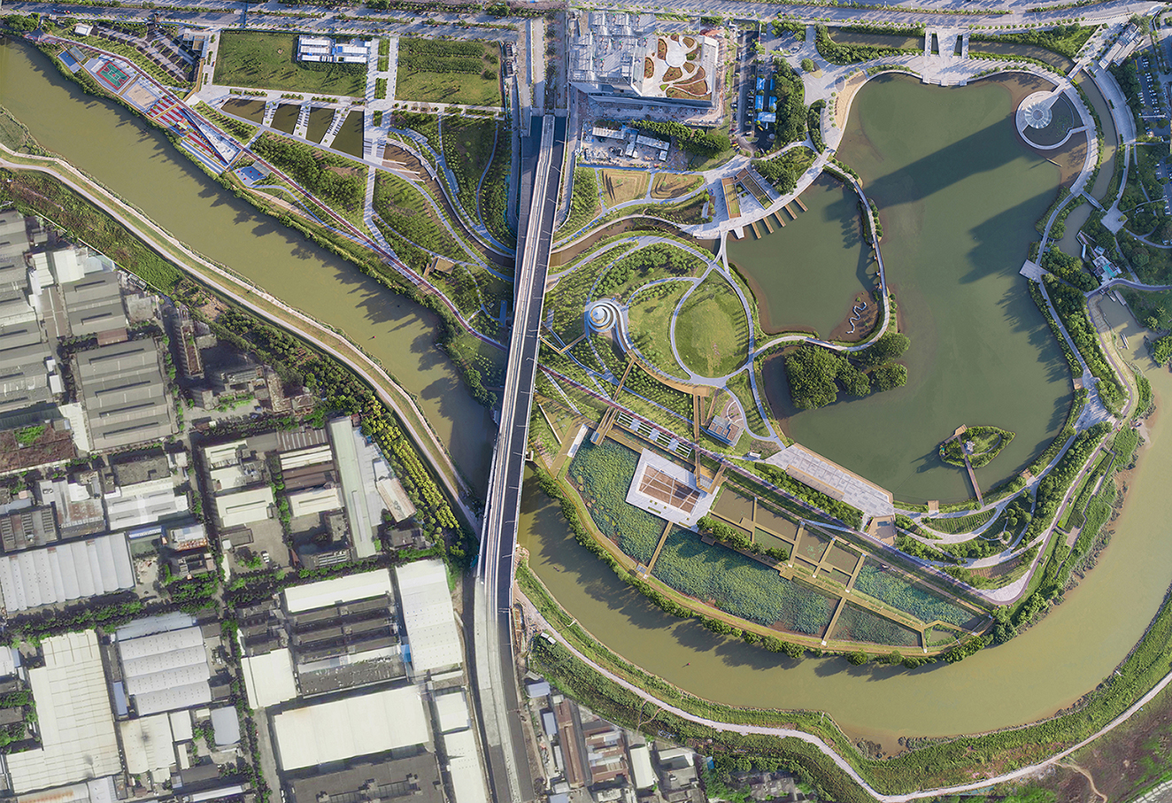 整體設(shè)計(jì)以“綠色河谷”、“水鄉(xiāng)肌理”為設(shè)計(jì)理念,依托櫓尾撬水道和文翰湖兩個(gè)水系,以一河兩岸為主要公共活動(dòng)帶,以河堤綠鏈串聯(lián)景點(diǎn),兩岸則通過(guò)步行橋聯(lián)系,整體提升濱水地區(qū)的價(jià)值。