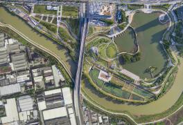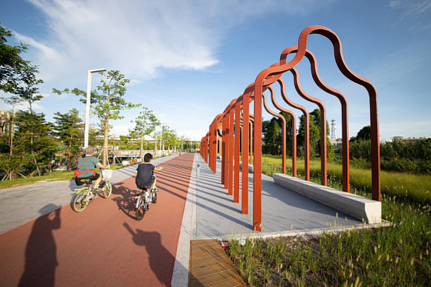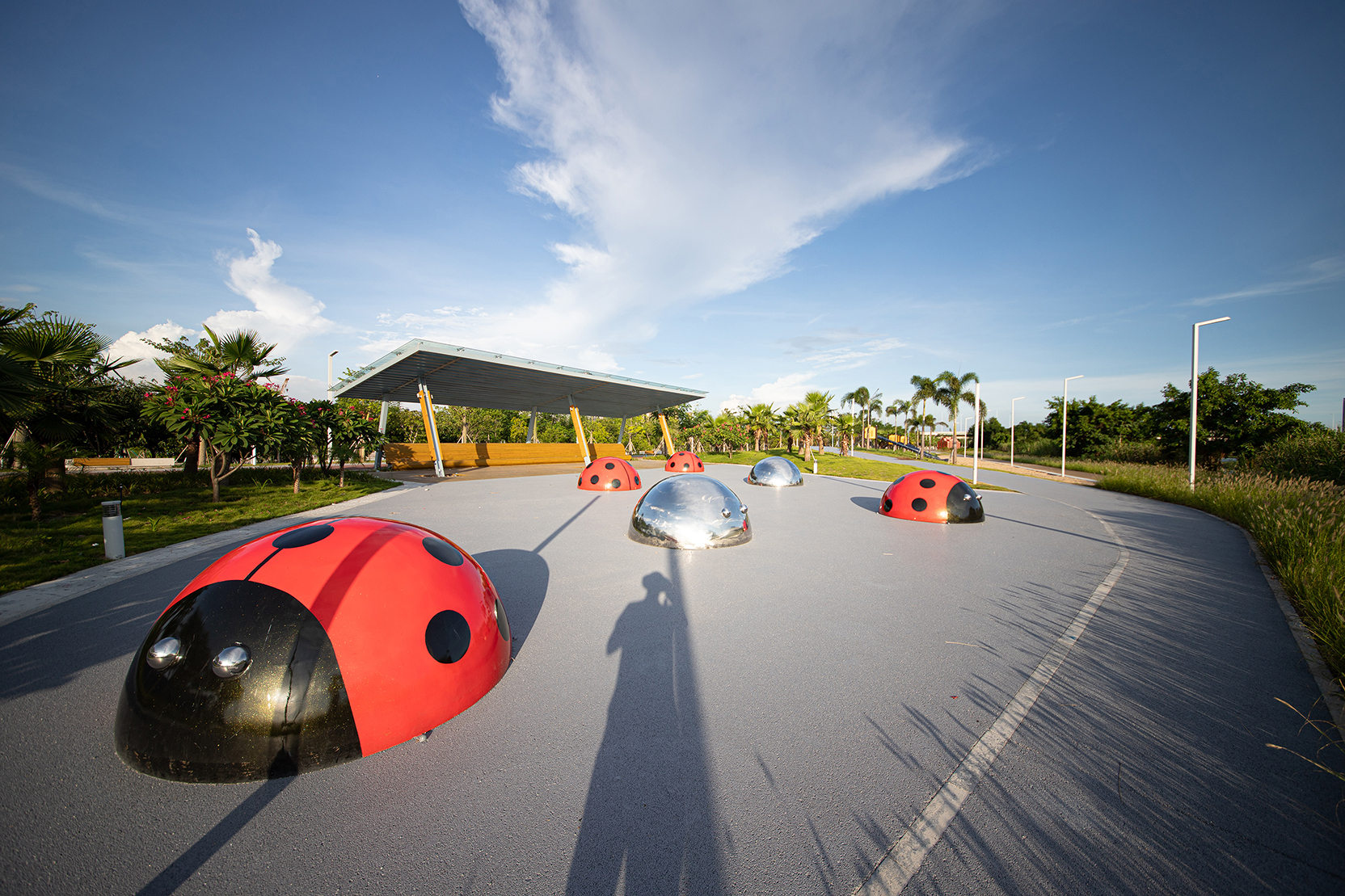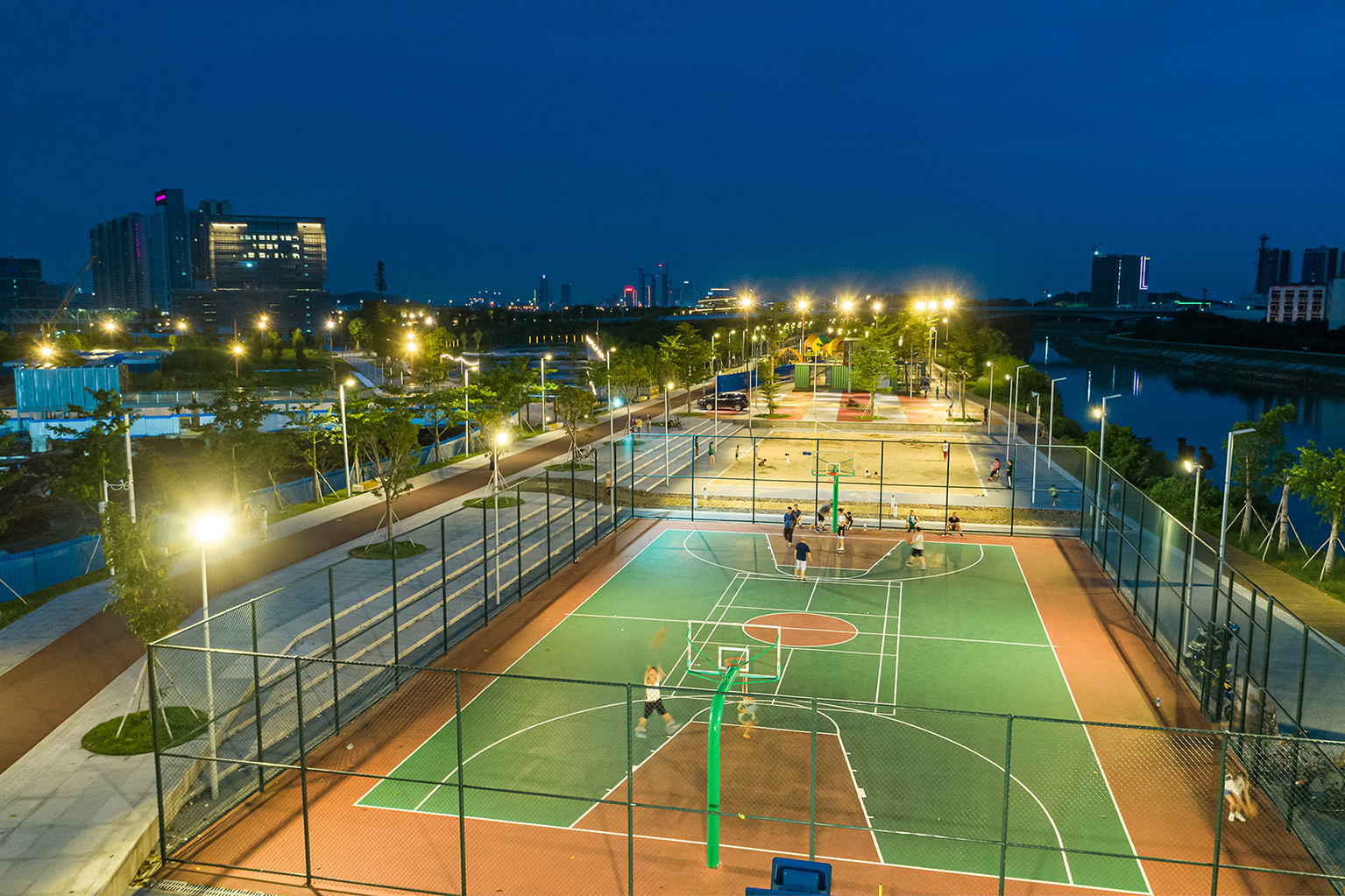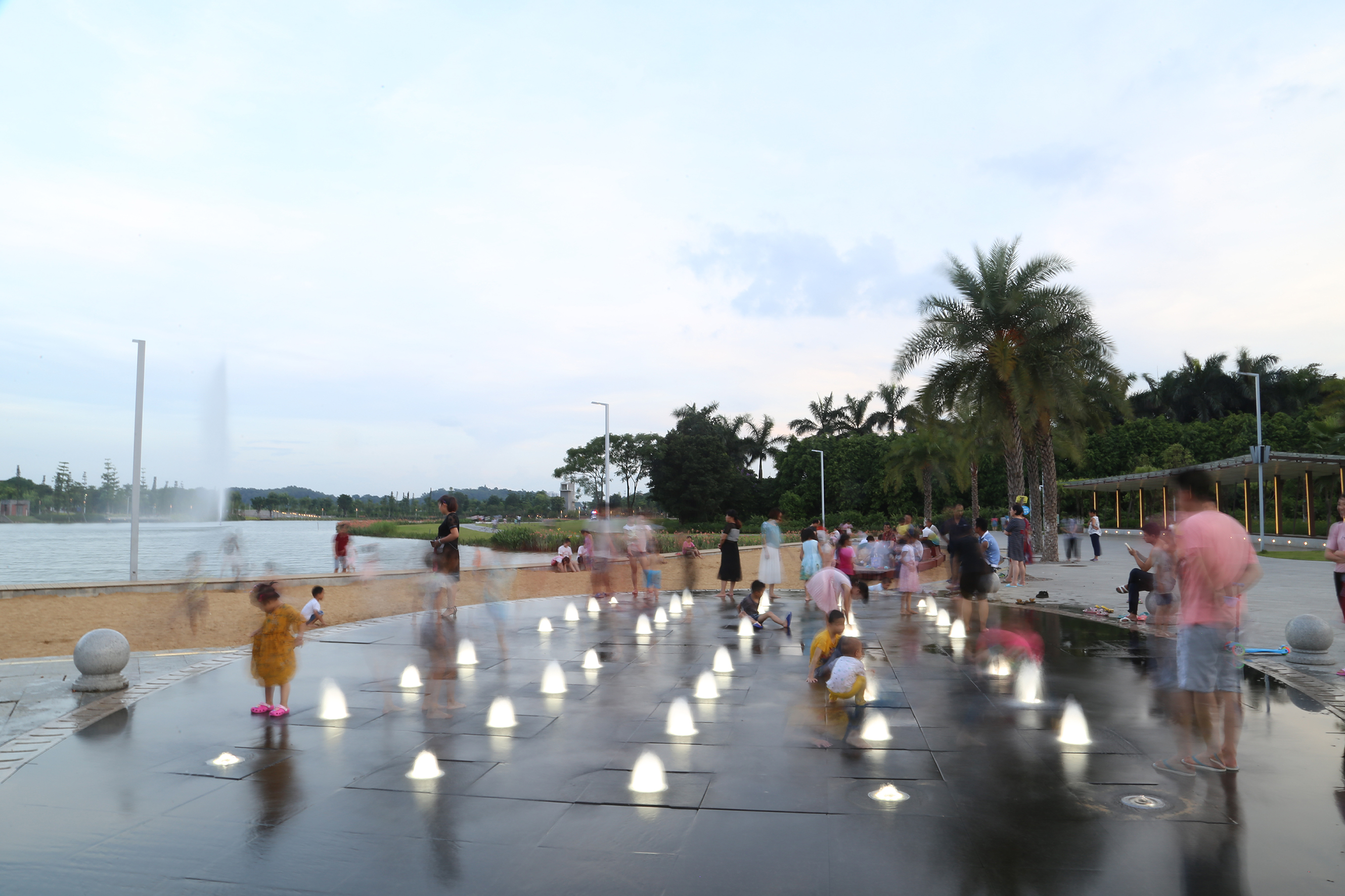 公園“河堤綠鏈”為重要的景觀視廊,串聯(lián)公園景點(diǎn),市民可獲得別致景觀體驗(yàn):登高遠(yuǎn)眺的麒龍塔、水天相映的千紙鶴、疍家風(fēng)情的新舟碼頭、一堤雙景的鳳凰花堤、歡快戲耍的日出草坪、南國(guó)風(fēng)情的陽(yáng)光沙灘、動(dòng)感活力的水上噴泉、親水靜謐的星光廣場(chǎng)、豐富多彩的運(yùn)動(dòng)設(shè)施等形成動(dòng)靜相宜的城市濱水休閑公園。