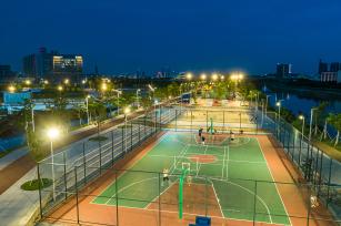 運(yùn)動(dòng)健身:兒童活動(dòng)設(shè)施、沙灘排球、籃球場(chǎng)、兵乓球、健身設(shè)施位于公園西段。