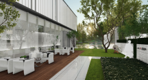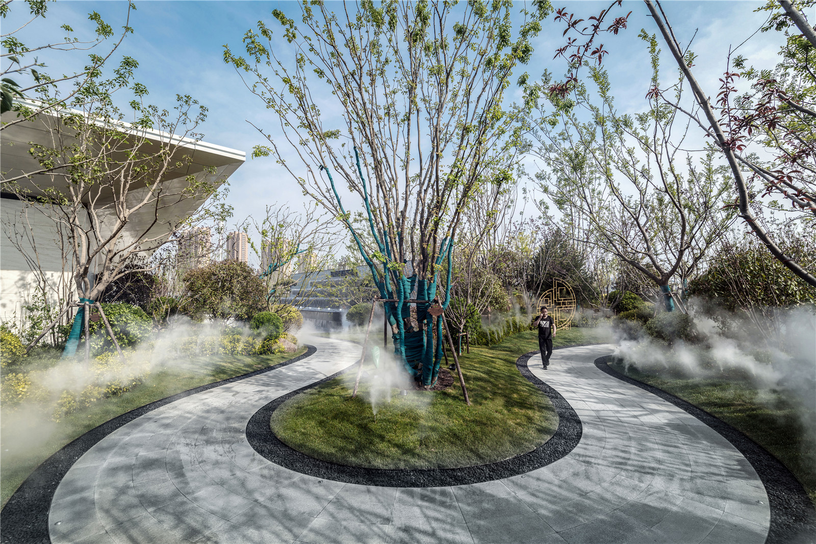 蜿蜒的步履小徑與開敞的草坪空間,突出移步異景的感官節(jié)奏變化,營造柔和舒緩的視覺感受,塑造進(jìn)入售樓中心的儀式感與歸屬感,強(qiáng)化空間體驗(yàn)感。