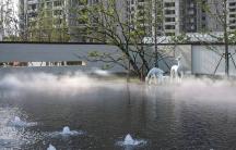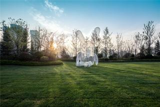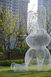 ▲ 現(xiàn)代藝術(shù)雕塑古納什小兔,布局在綠意林蔭中,或隱或現(xiàn),似春風(fēng)絮語,講述著那些細(xì)水長流的故事。