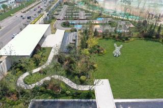 小徑的盡頭,開放型空間給人眼前一亮的感覺,綠意盎然是休閑活動(dòng)的天堂。利用地形上的高低起伏以及灌木叢的高低錯(cuò)落營造出一處開敞式的草坪景觀。古納什小兔IP形成視覺上的吸引力以及感官上的沖擊感。