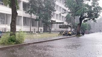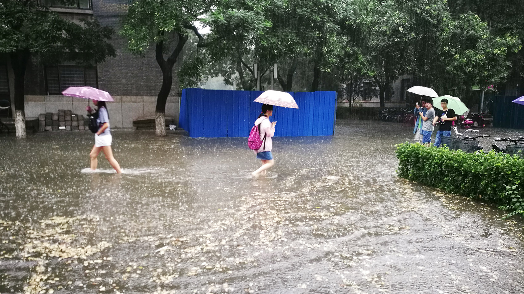 ▲遭受內(nèi)澇困擾的校園,Waterlogged campus ?Liang Zeng
