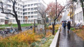 Peking University is one of the oldest and most crowded university campuses in China. The southern part of the campus, in particular, houses 22,997 students in an area of less than 0.5 square kilometers. In order to provide enough space, the campus was constructed with high intensity, which has led to severe waterlogging and runoff pollution. The lawns between the buildings are not for human use and do little to reduce surface runoff.