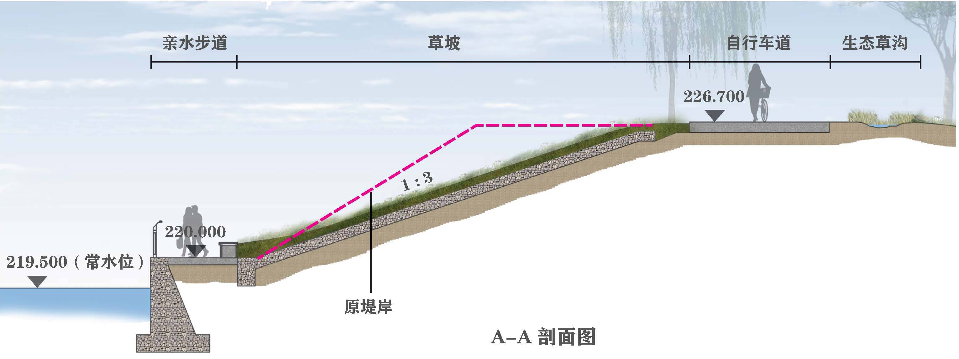 保留河堤上的樹木及河道內(nèi)的生態(tài)系統(tǒng)  ? 同濟(jì)大學(xué)建筑設(shè)計研究院(集團(tuán))有限公司-曾健