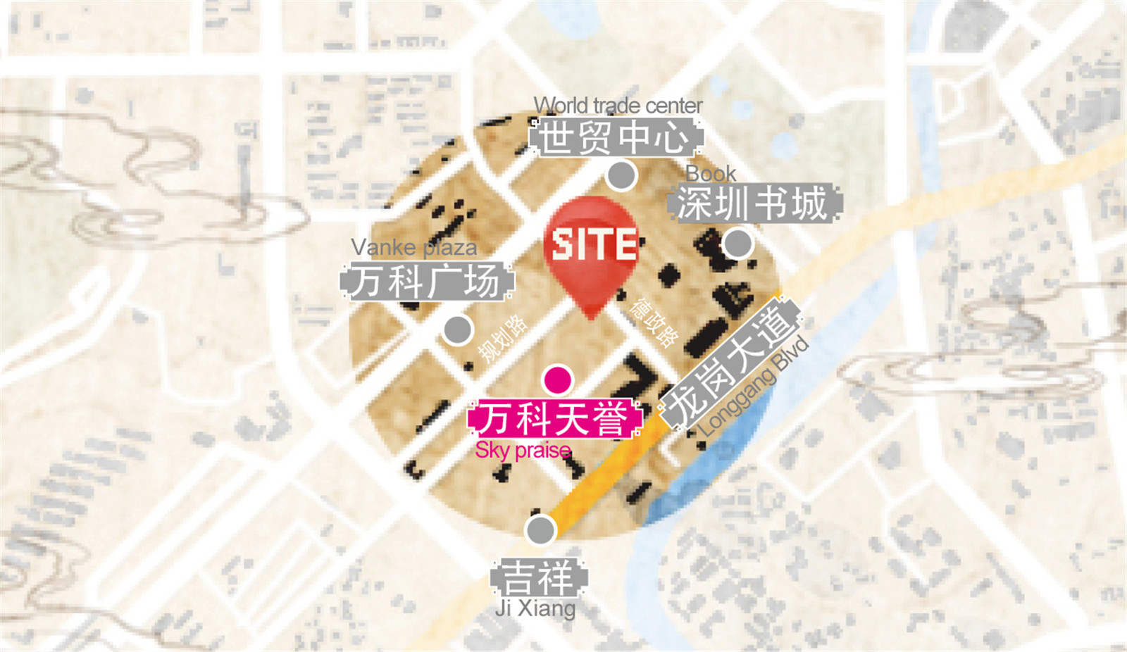 The project is located in the central area of Longgang, the southeast corner of Vanke Sky Praise Phase II, which is part of Vanke Sky Praise Urban Renewal Project. It is adjacent to Sky Praise Experimental School in the east and Vanke Plaza in the north.