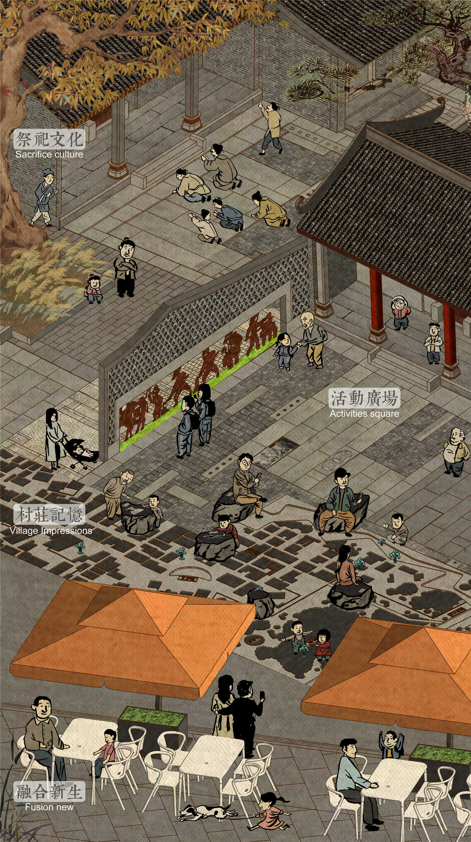 When the plan was launched, we visited the villagers of the former West Village together with the project builder, and I was deeply moved by the words from the village chief. He said, "In order to make a better life for everyone, we have actively responded to urban development and construction. Although our lives have changed dramatically over the years, our homesickness could not be settled. With this ancestral temple renovation, I hope you can retain some of the history and culture of our old West Village to give our generation a little spiritual sustenance; I also hope we can leave some historical scenes to our children to let them know what this place where their ancestors lived in the past really looks like. "The designer said.
