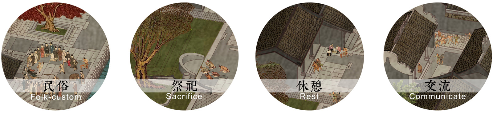 The ancestral halls in the base are relatively independent, while the utilization rate of public space is low, lacking of the environment atmosphere.