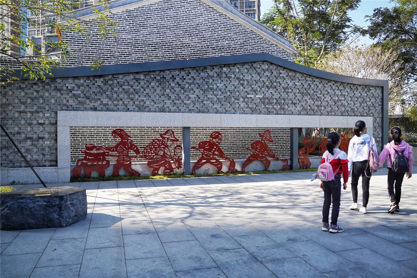 景墻融合嶺南建筑的豐厚神藴,又通過色彩、材質(zhì)、尺寸、細(xì)節(jié)的處理,使空間連續(xù)而富有變化。承載著人與自然、人與生活、人與文化之間的溝通。