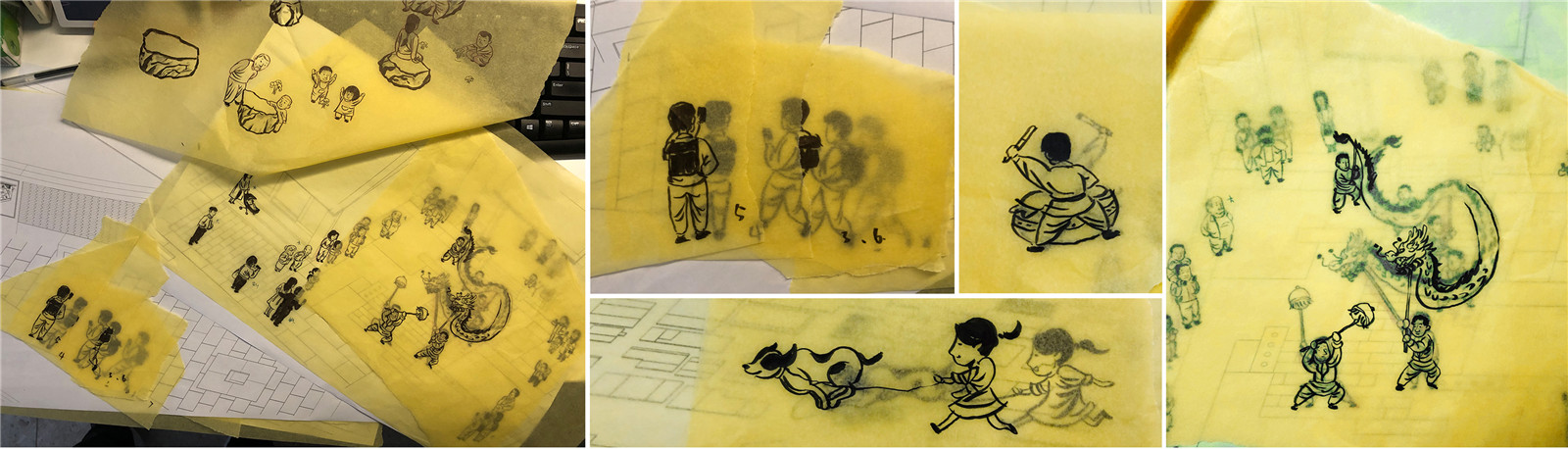 △前廣場生活場景插畫 Front square illustration depicting life scenes