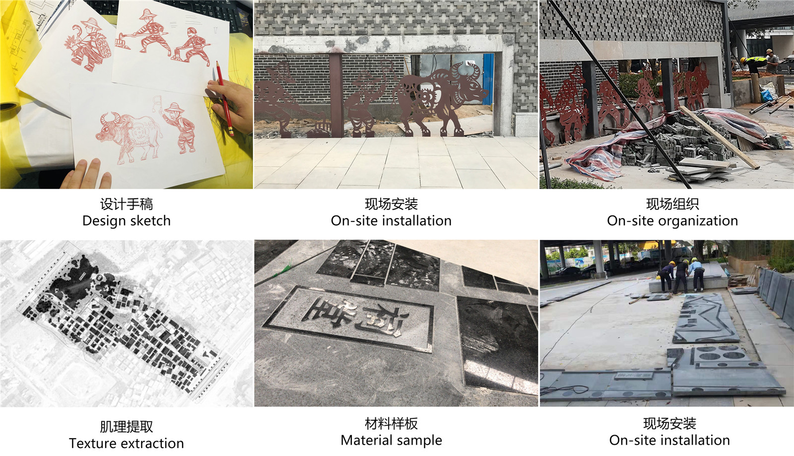 △現(xiàn)代工藝與傳統(tǒng)手藝:將非物資文化遺產(chǎn)剪紙與現(xiàn)代工藝相結(jié)合,別出心裁的景墻設(shè)計(jì),將農(nóng)耕文化記憶自然融入現(xiàn)代生活。Modern technique and traditional craftsmanship: combining the non-material cultural heritage “paper cutting” with modern technique, and the ingenious landscape wall design integrates farming cultural memories into modern life.