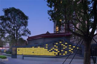 The most beautiful moment comes when the street lights go on at dusk and the entire landscape wall reflects a soft glow where the traditional elements are combined with modern materials. It also surrounds, renders, and overlaps with the soft lights of the surroundings, forming a connection between the past and the future, with a profound artistic conception.