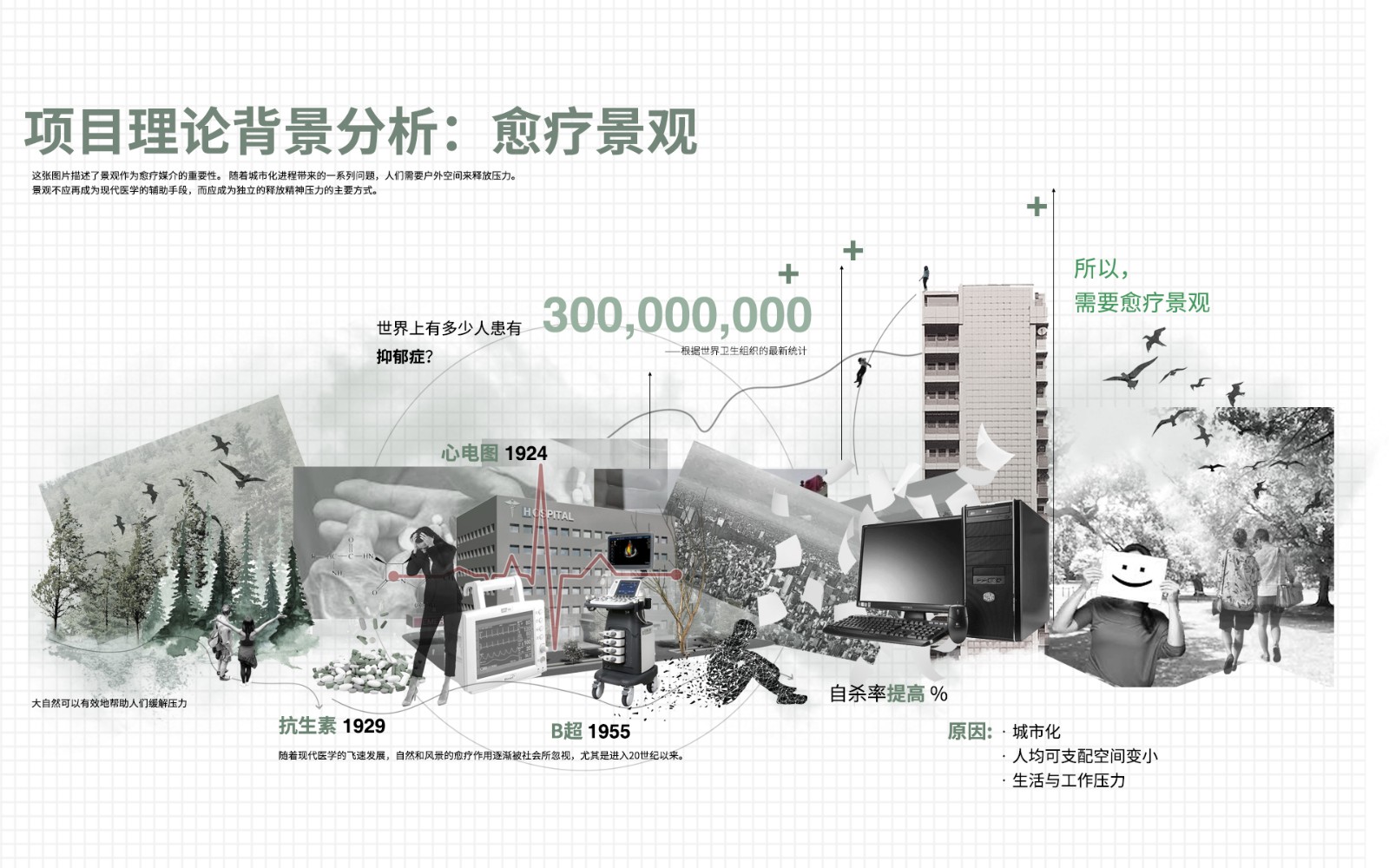 ▲社會(huì)與經(jīng)濟(jì)的快速發(fā)展帶來壓力的增大等風(fēng)險(xiǎn)的提高,且隨著現(xiàn)代醫(yī)學(xué)的發(fā)展,自然景觀的愈療效果逐漸邊緣化。